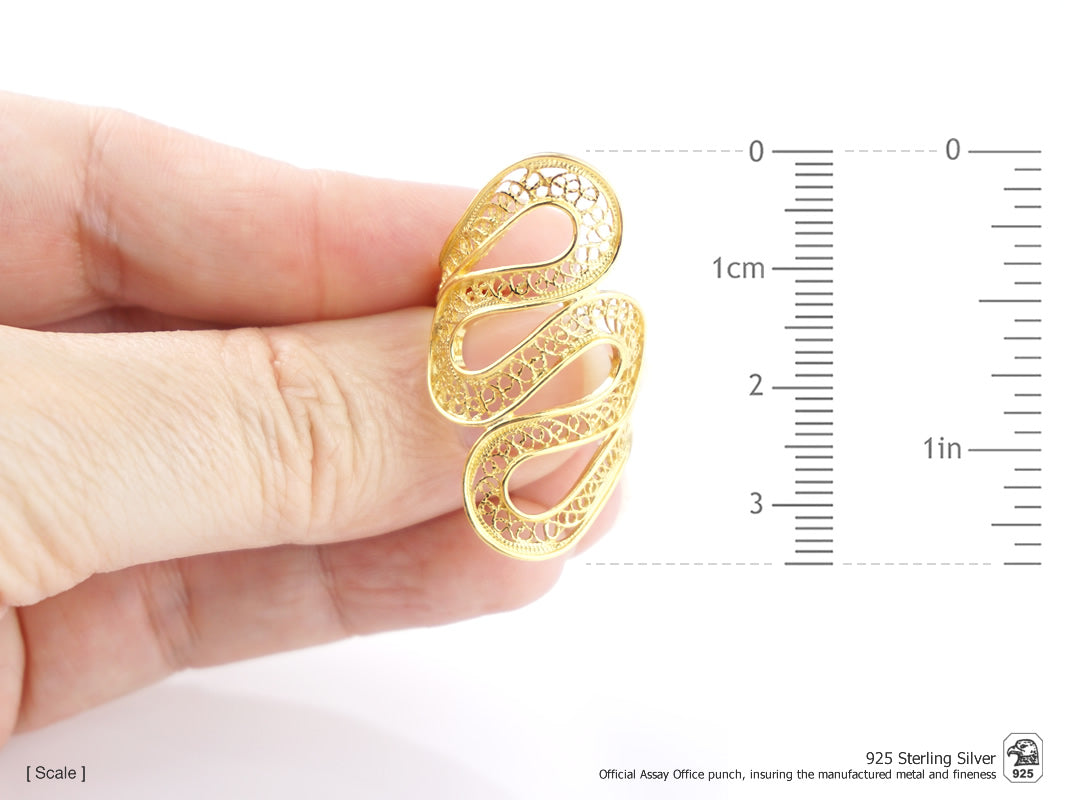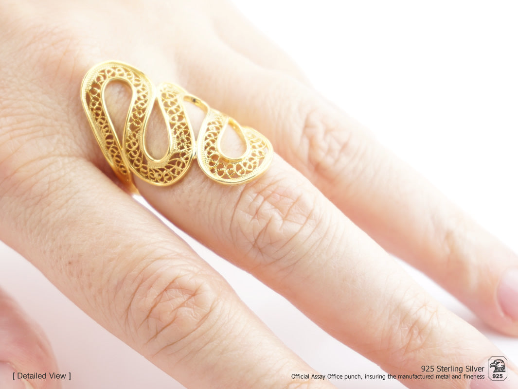 Anel Curvas ajustável, Filigrana Portuguesa, Prata de Lei 925 Dourada