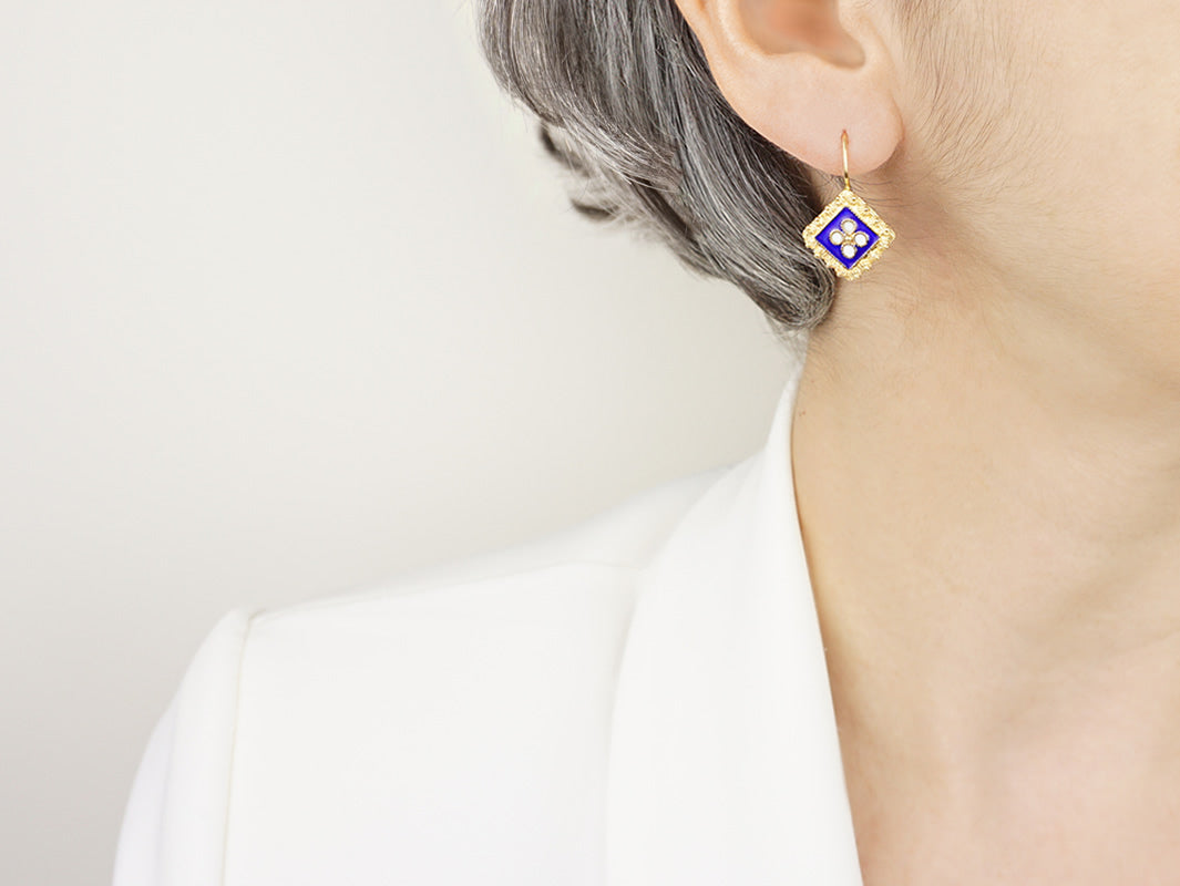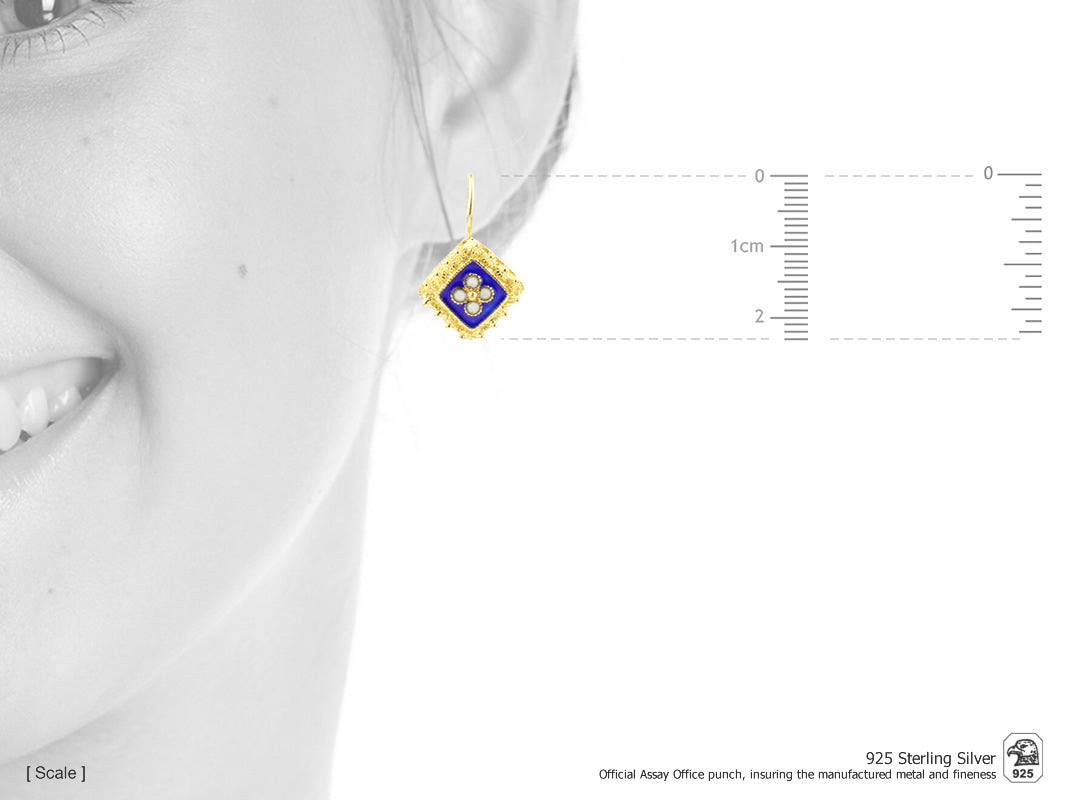 Elegantes Brincos Caramujo Quadrados com esmalte, de gancho. Filigrana Portuguesa, feito em Portugal em Prata de Lei 925 com Banho de Ouro.
