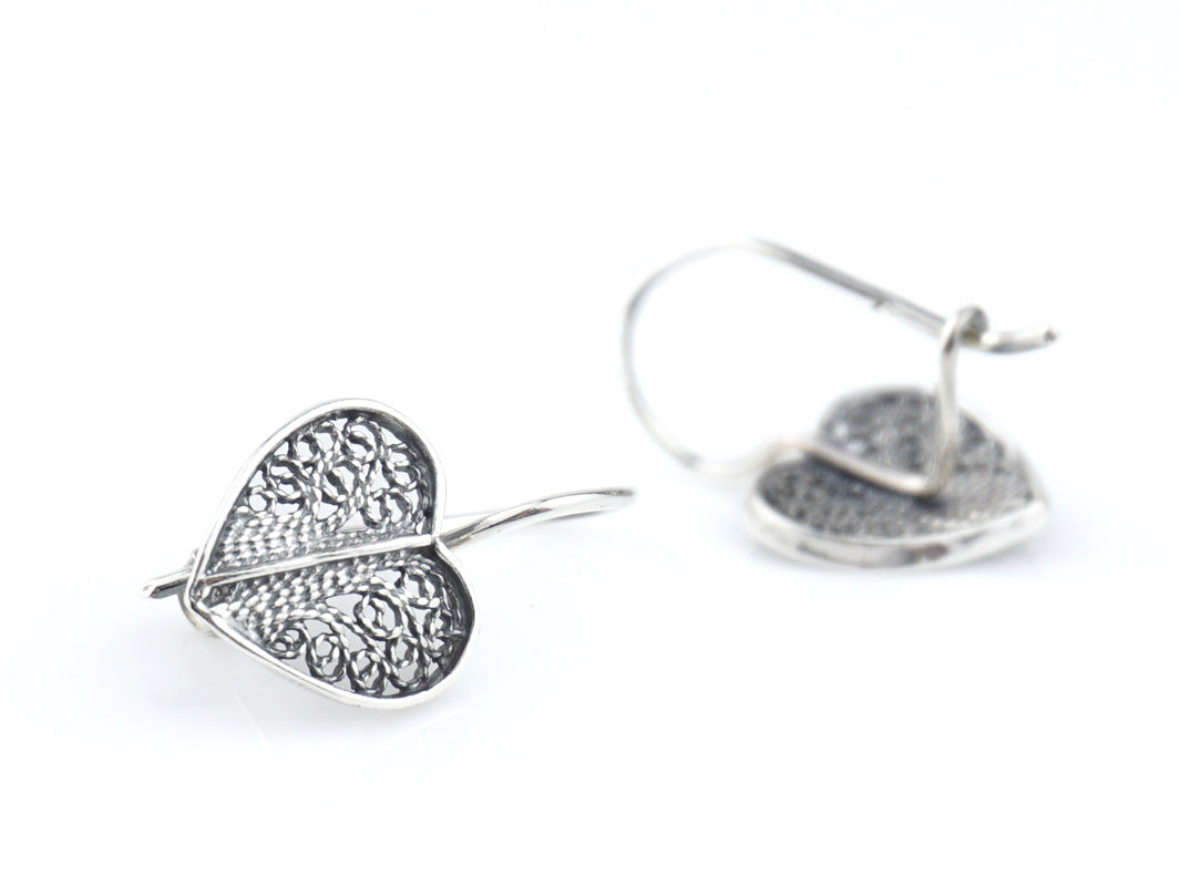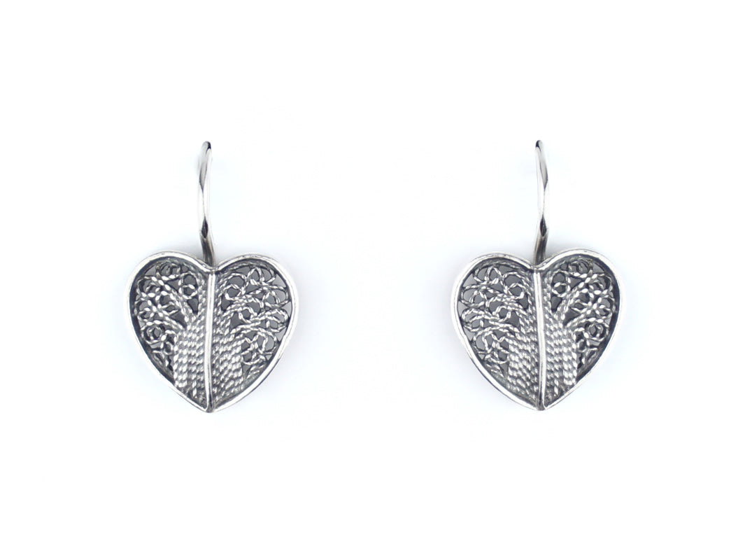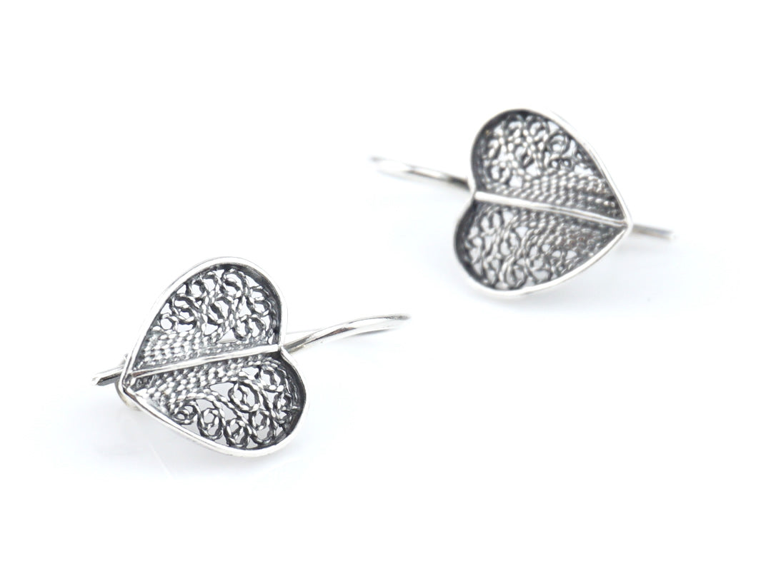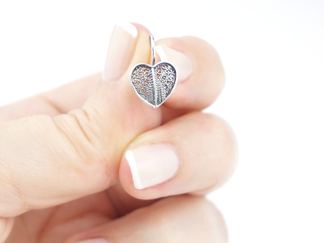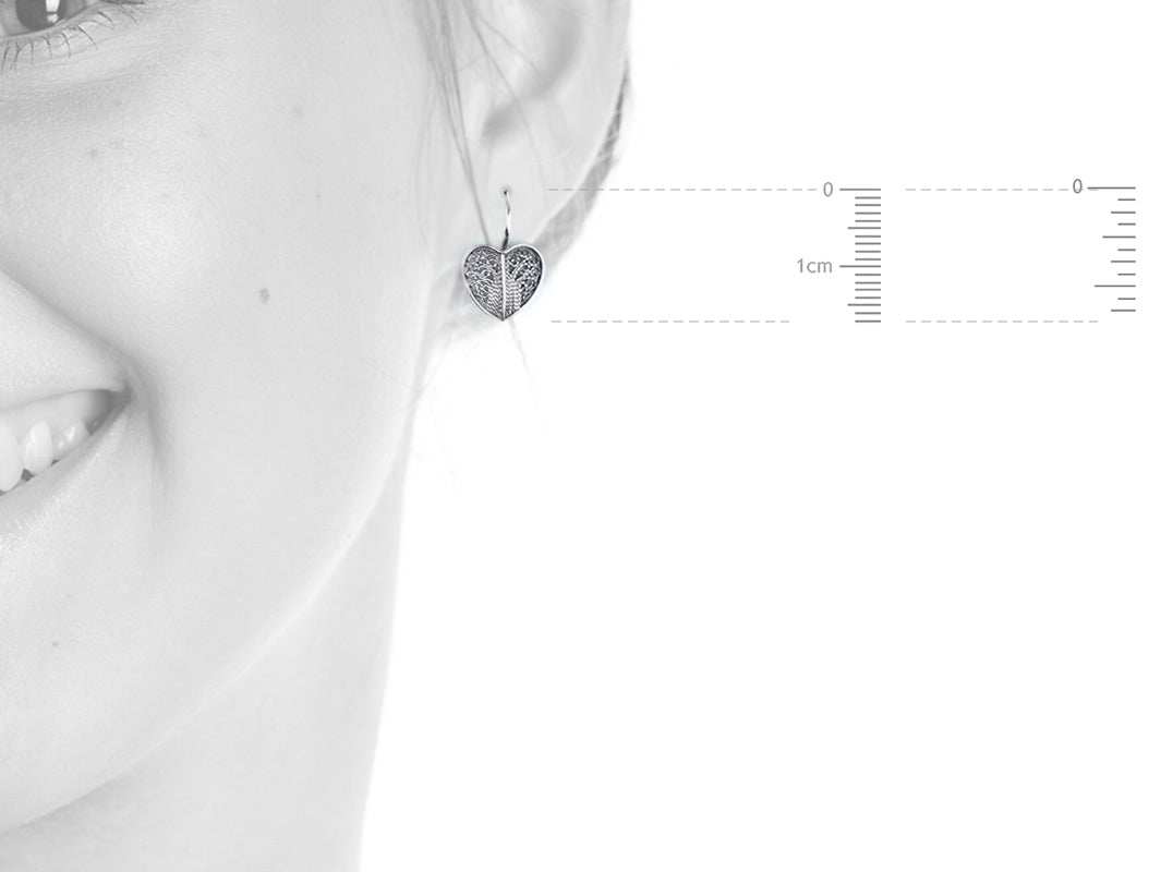 Elegantes Brincos Coração pequenos, de gancho. Filigrana Portuguesa, feito em Portugal em Prata de Lei 925.