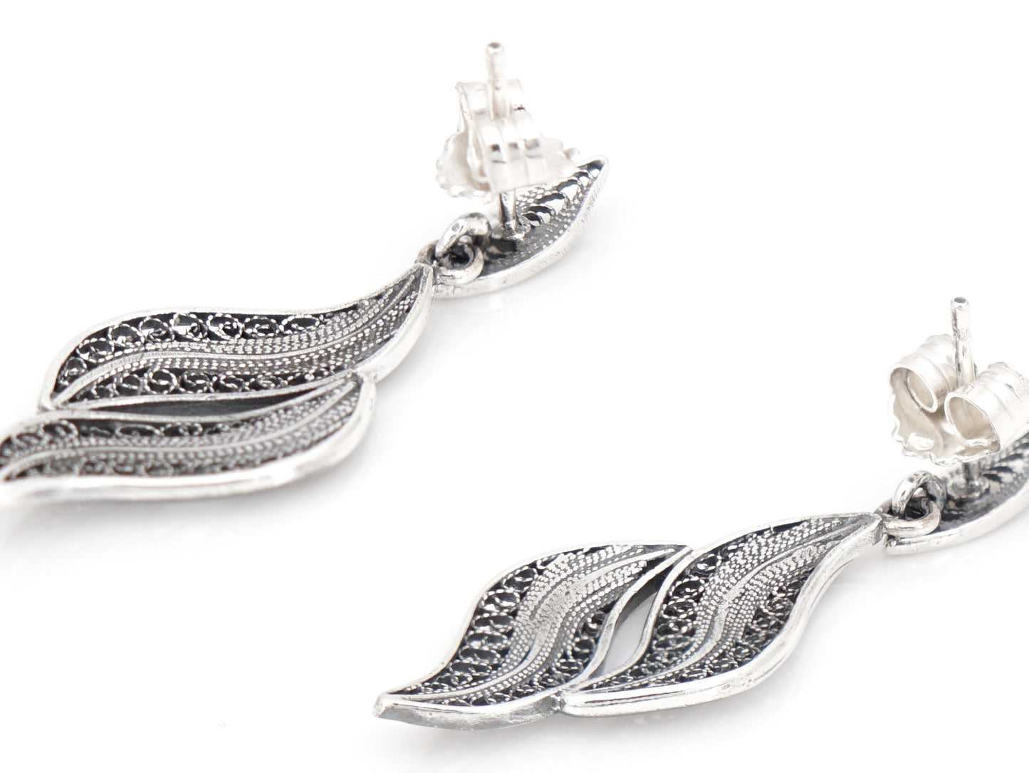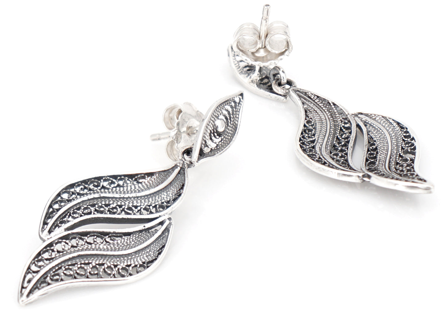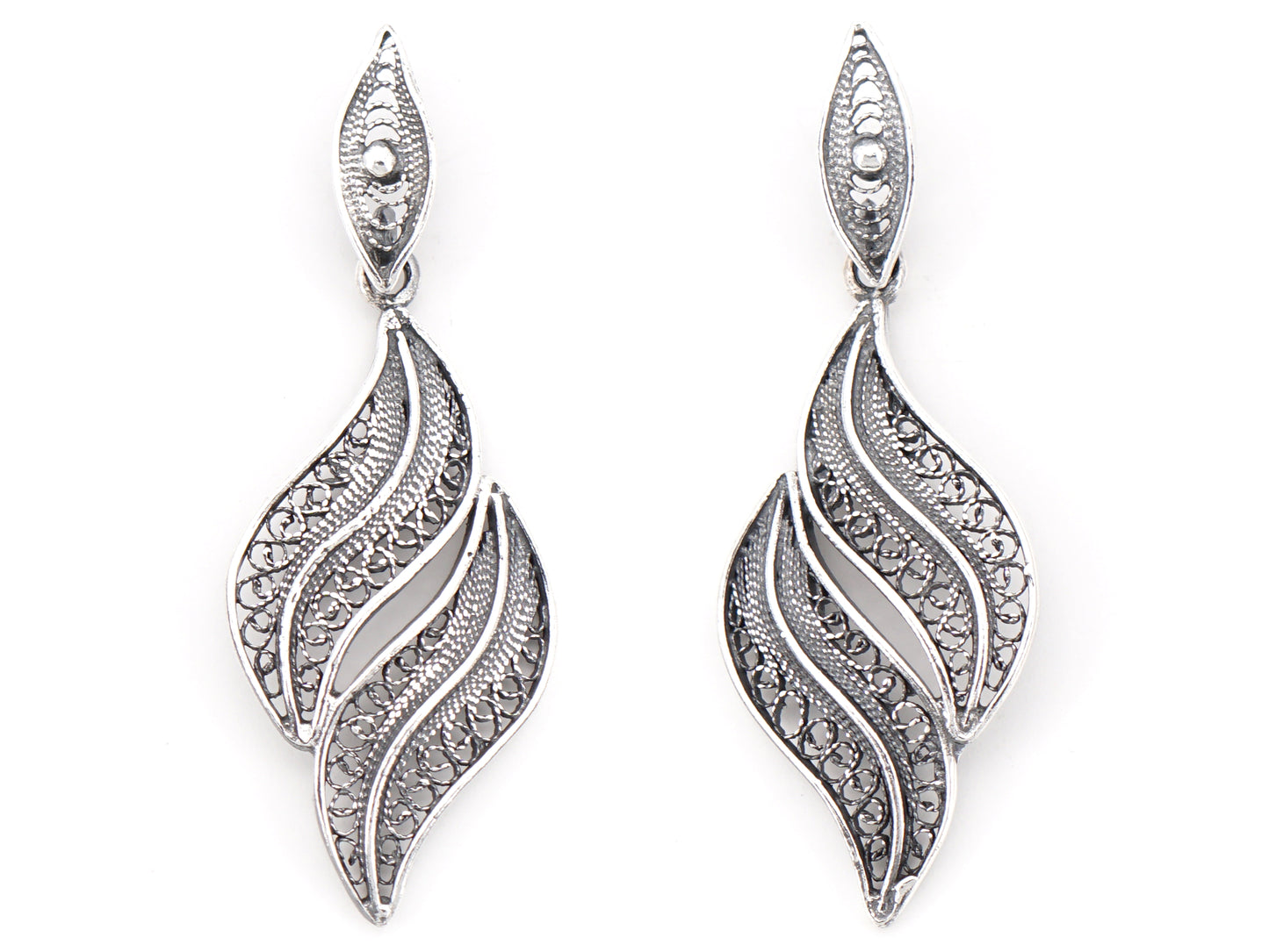 Elegantes Brincos Curvas, compridos, de tornilho. Filigrana Portuguesa, feito em Portugal em Prata de Lei 925.