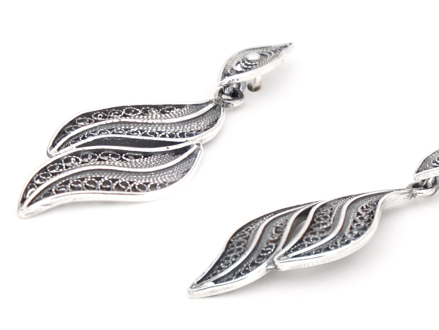 Brincos Curvas Compridos, Filigrana Portuguesa, Prata de Lei 925