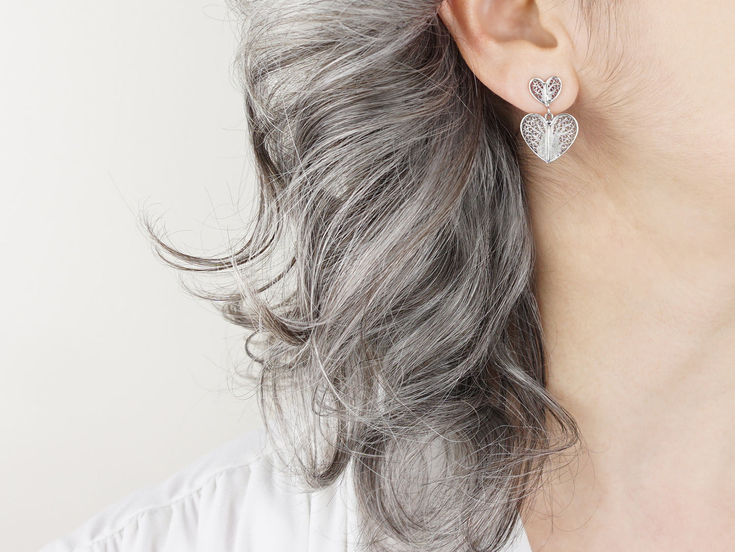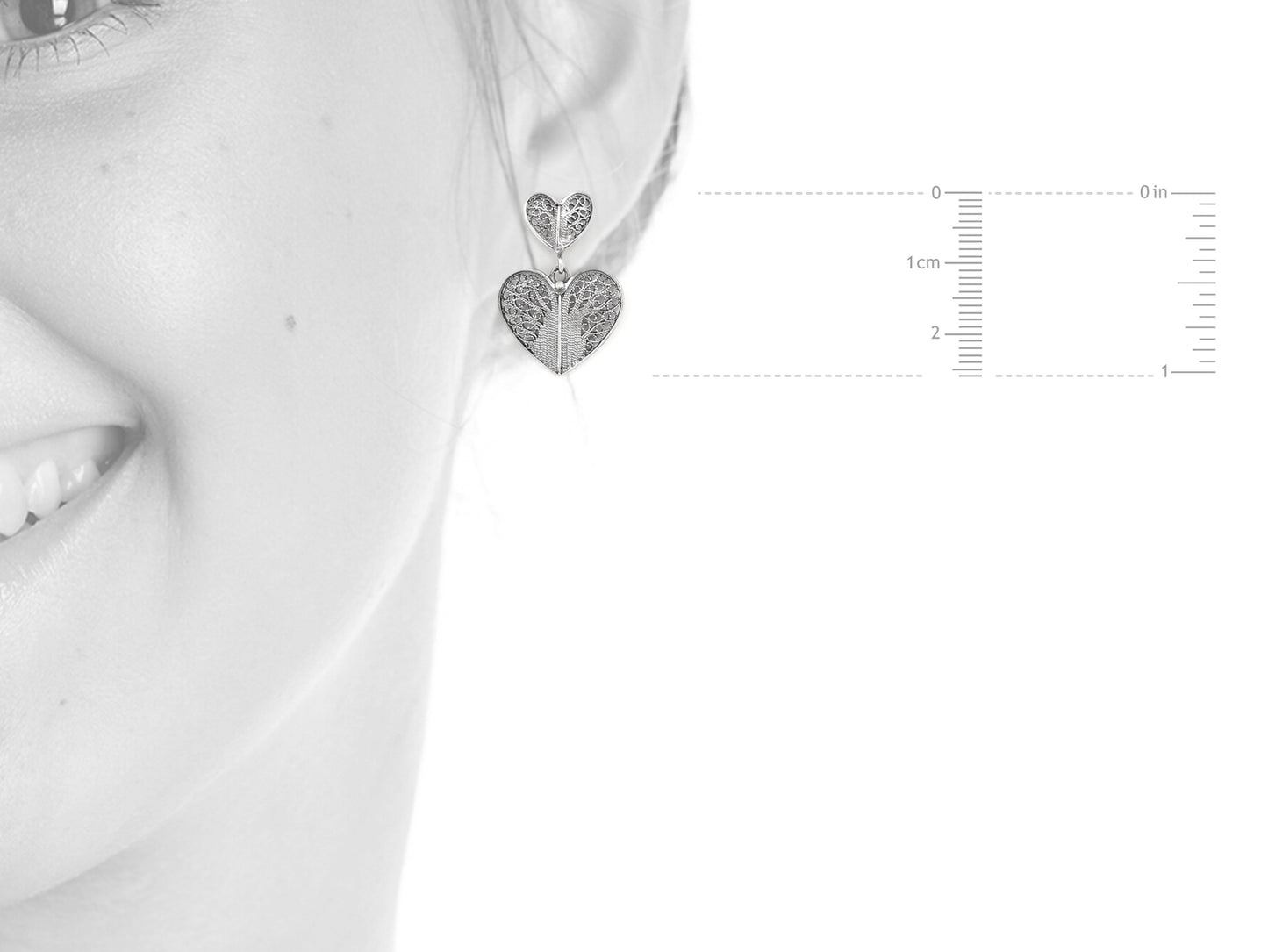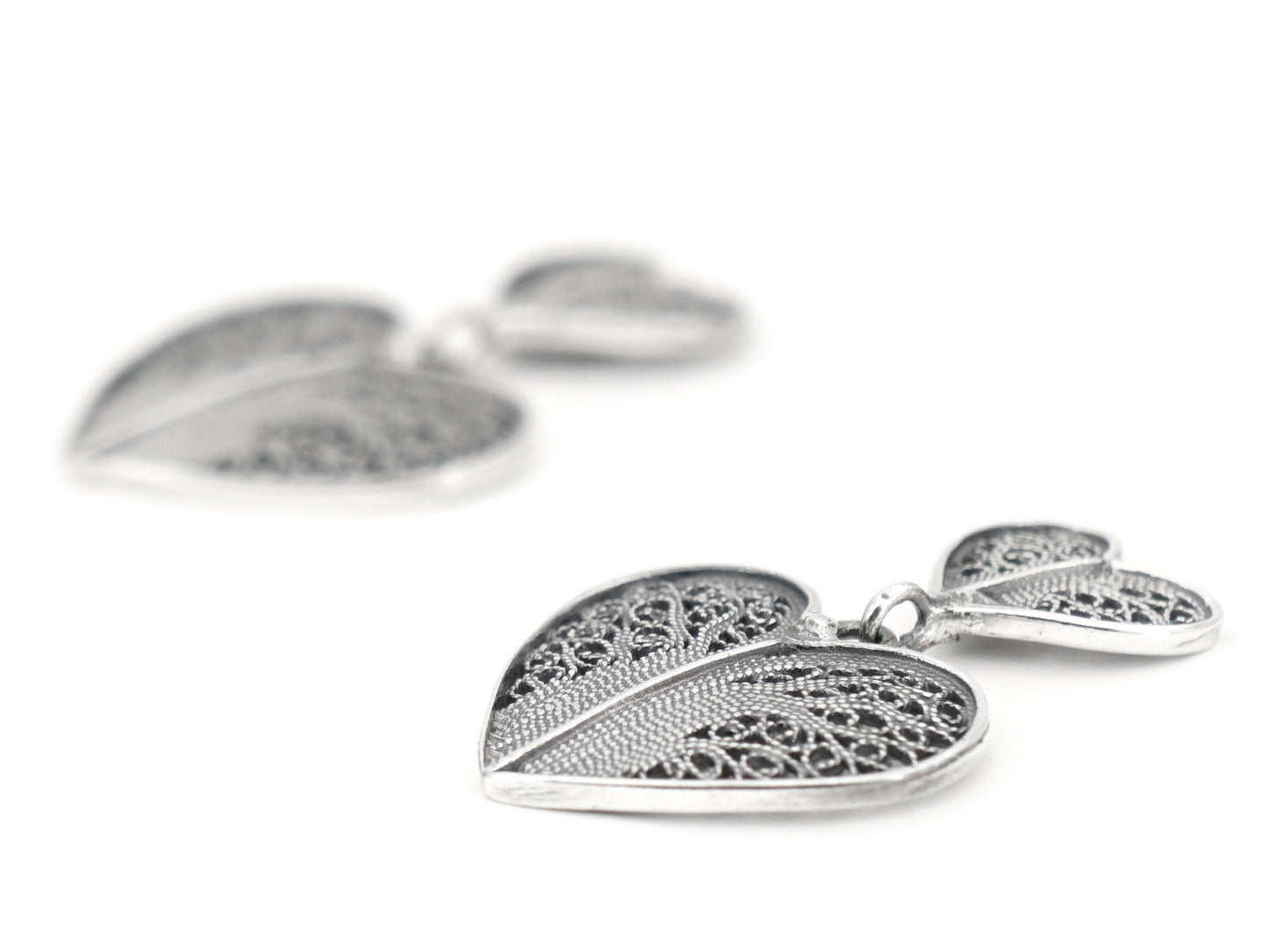 Brincos Dois Corações, Filigrana Portuguesa, Prata de Lei 925