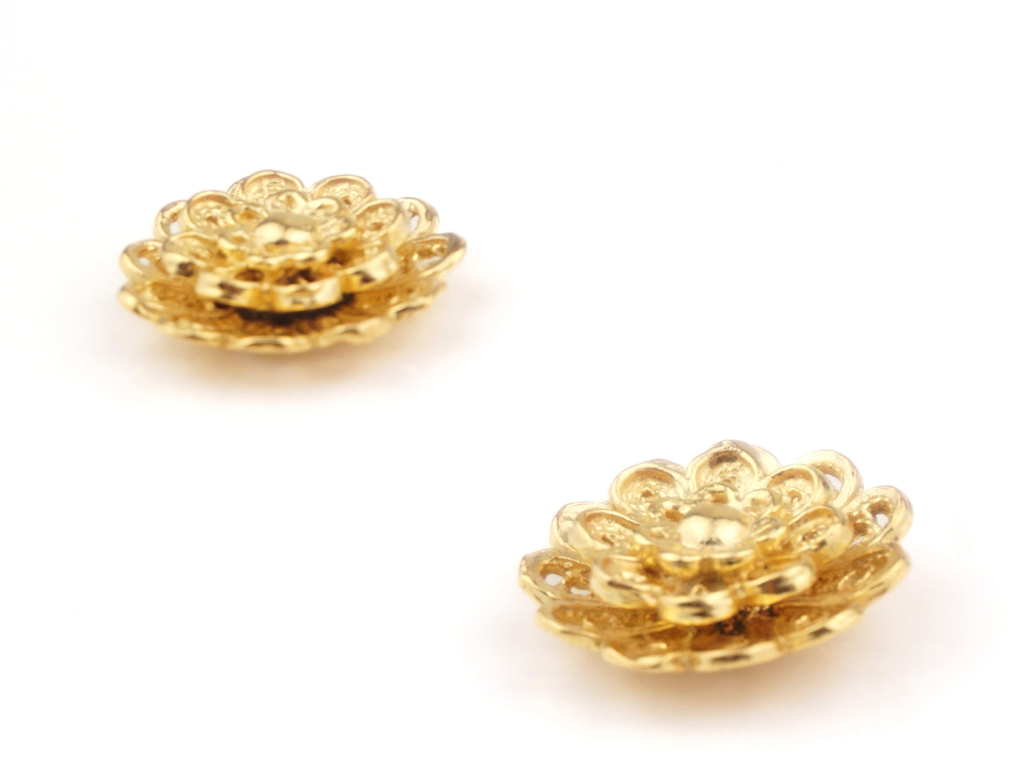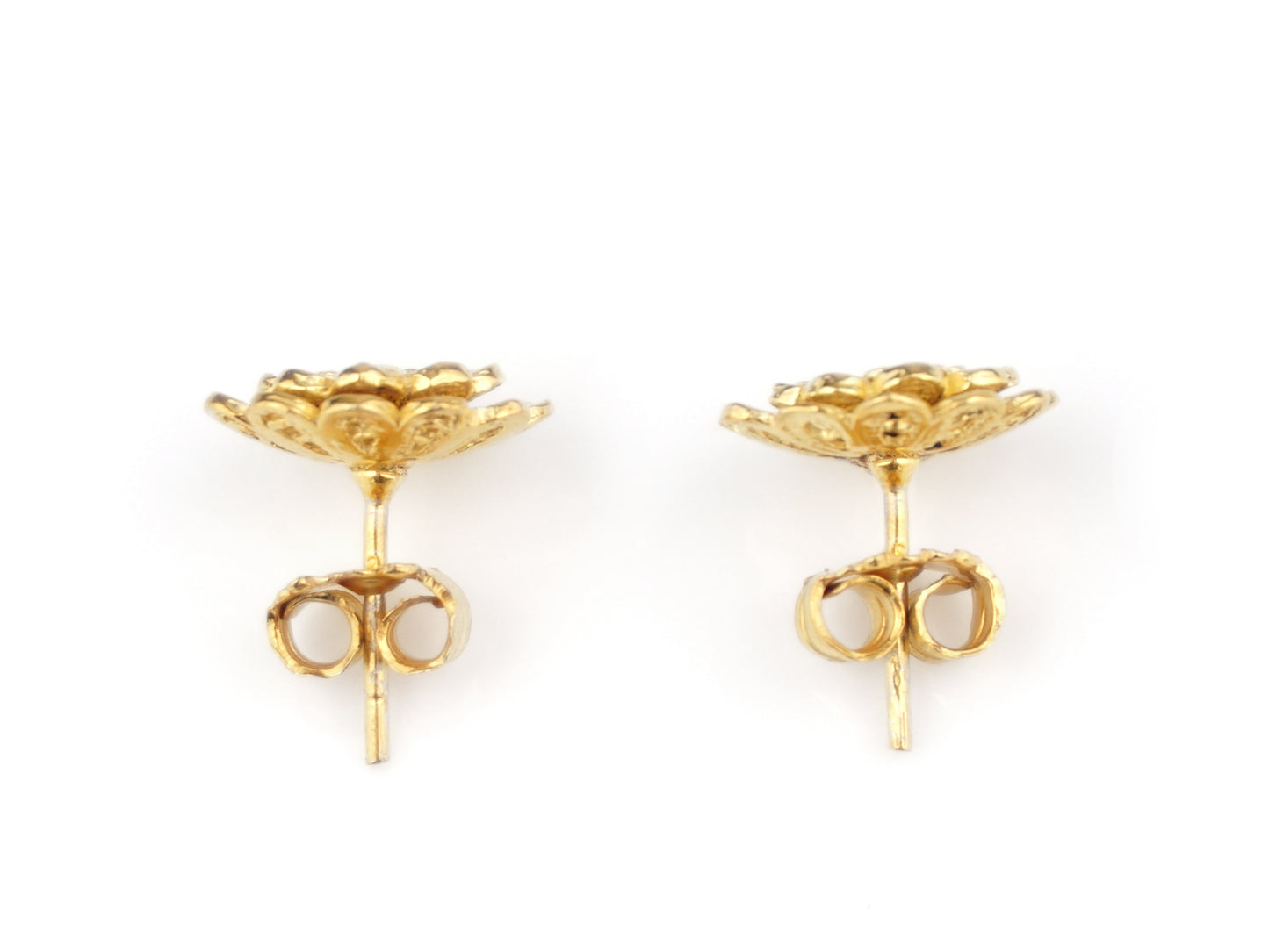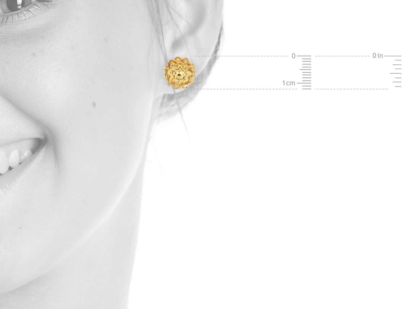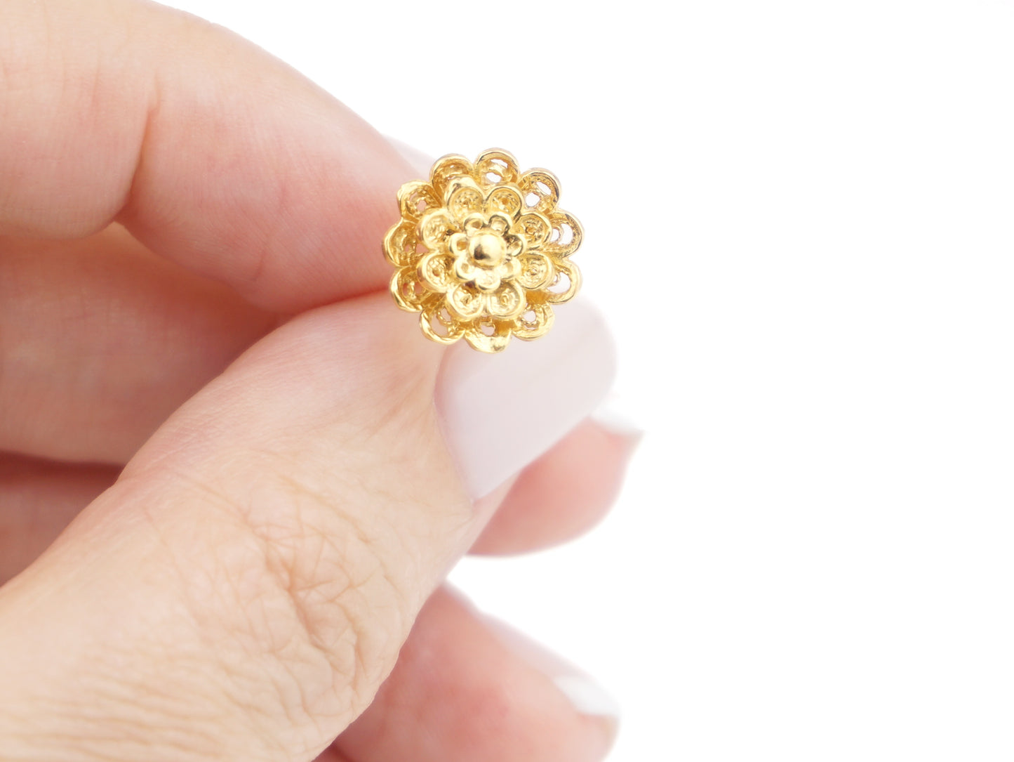 Elegantes Brincos Flor Rica, de tamanho pequeno, de tornilho. Filigrana Portuguesa, feito em Portugal em Prata de Lei 925, com Banho de Ouro.