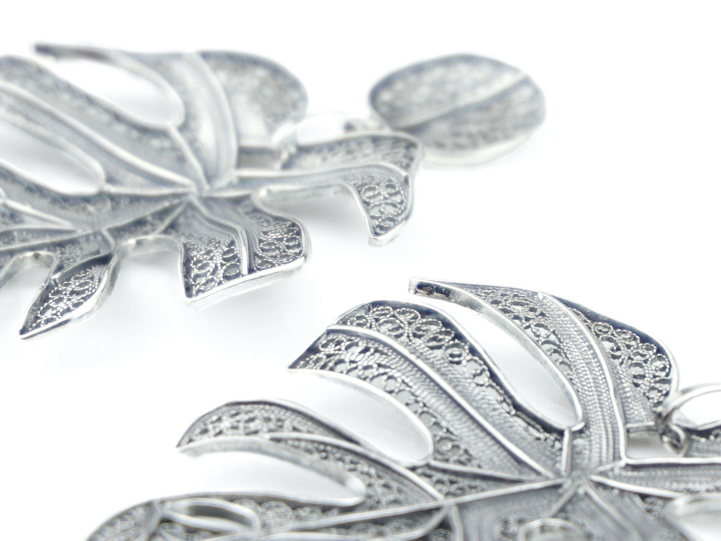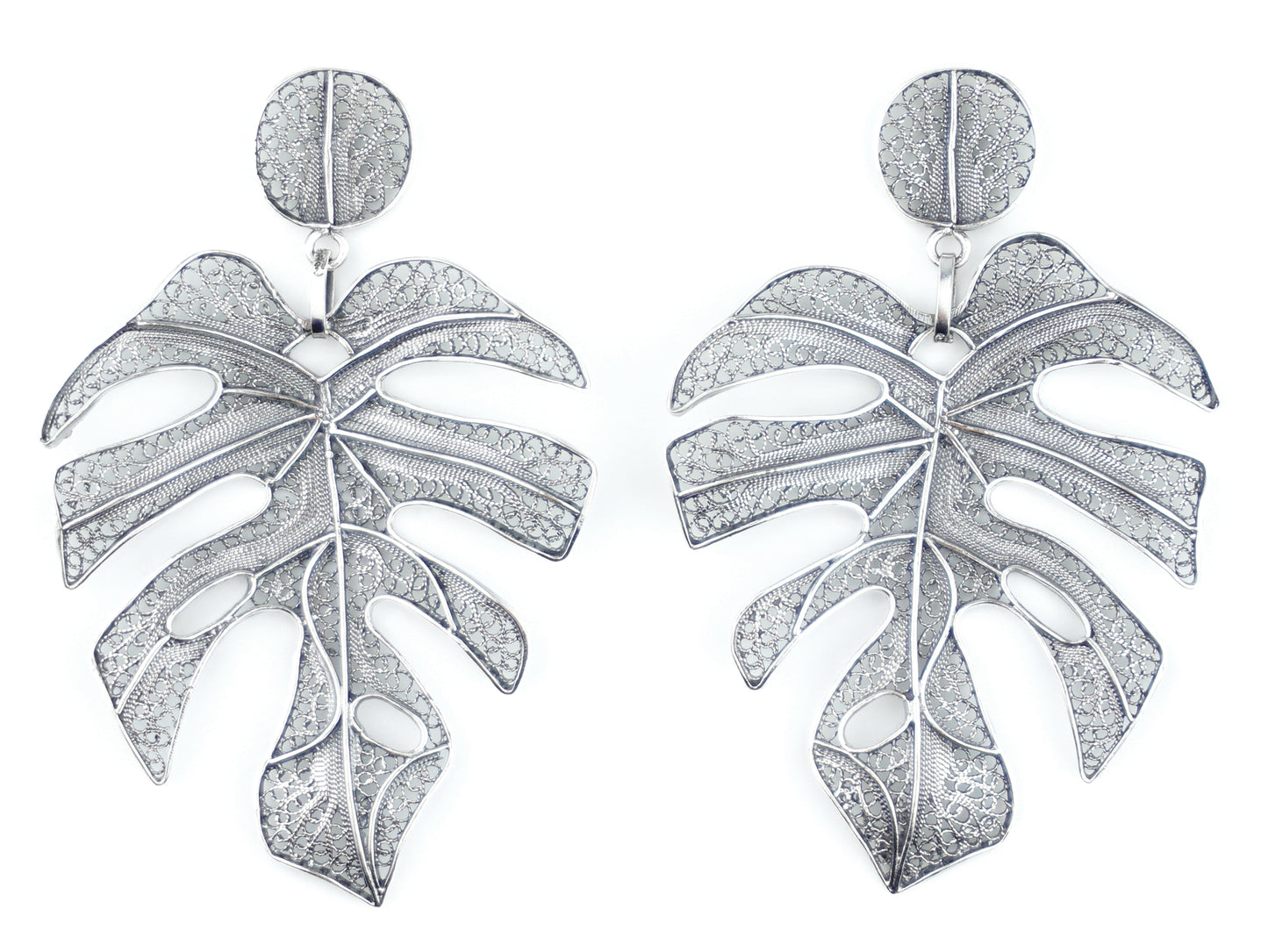Brincos Folha Extra Grande, Filigrana Portuguesa, Prata de Lei 925