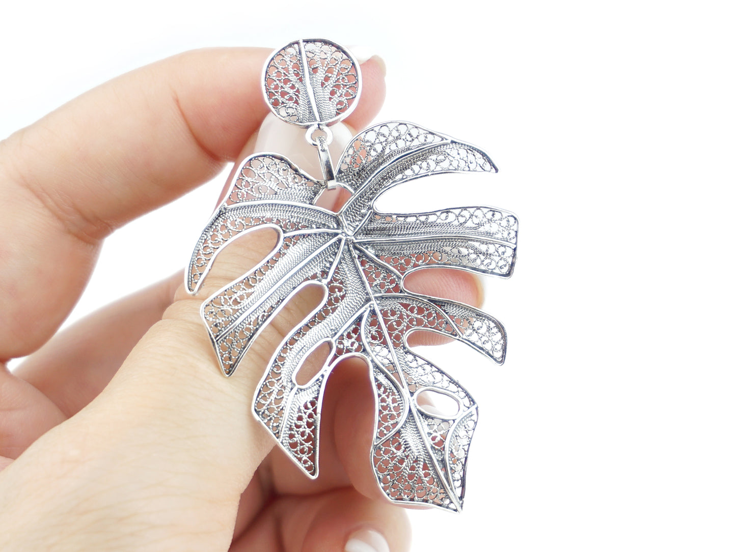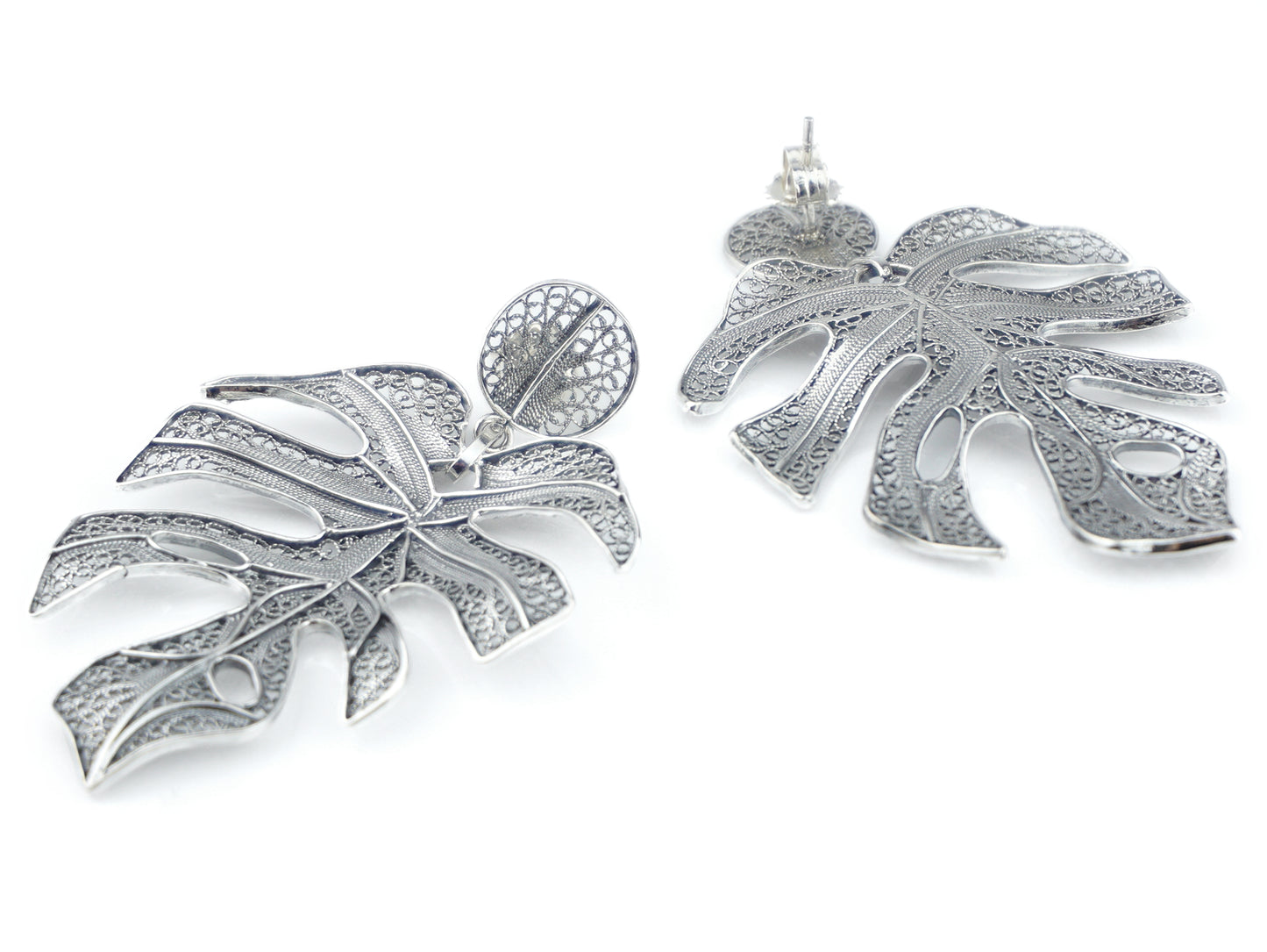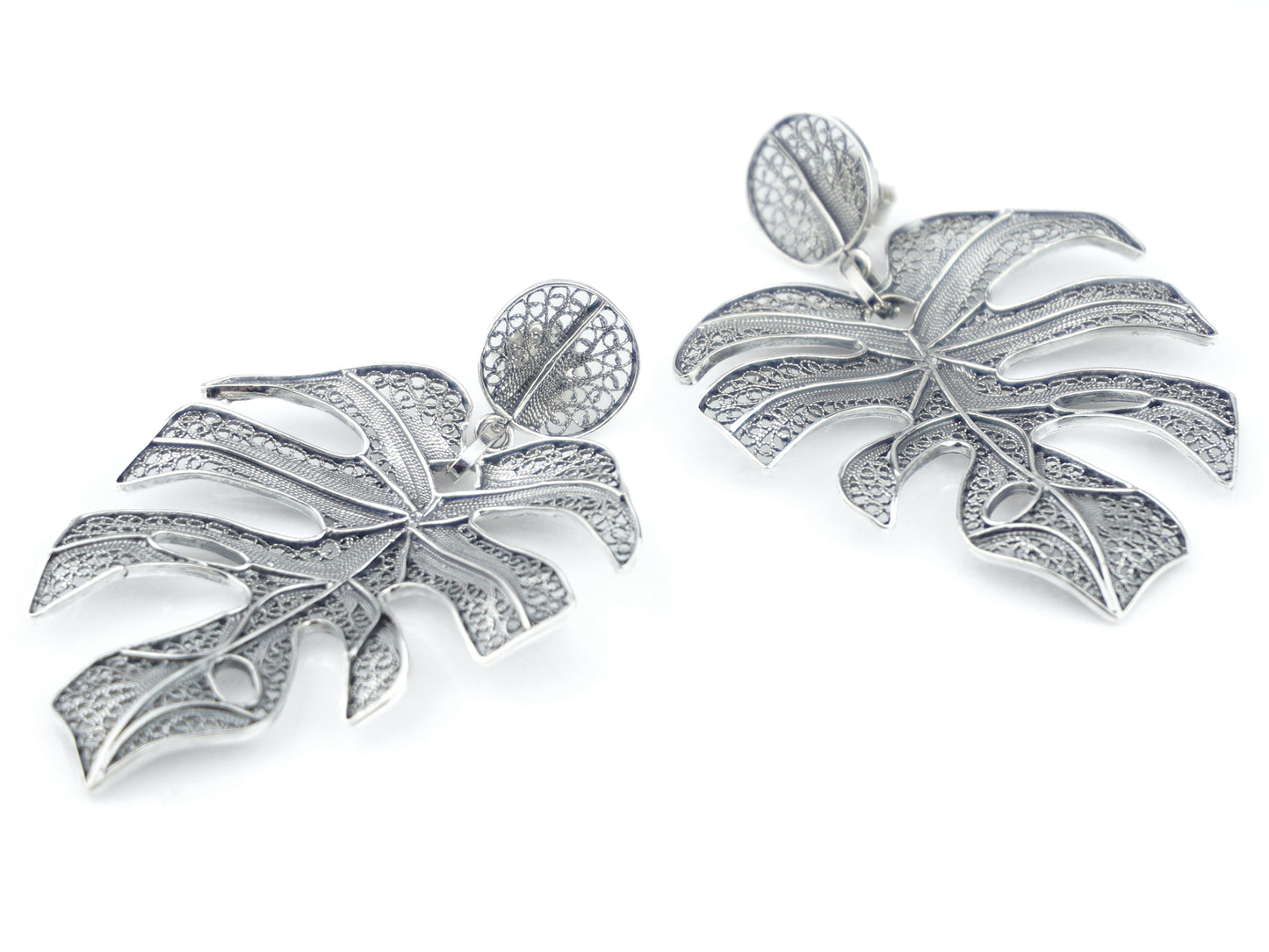 Elegantes Brincos Folha extra grande, de tornilho. Filigrana Portuguesa, feito em Portugal em Prata de Lei 925.