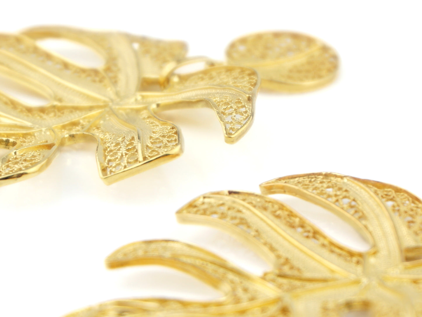Brincos Folha Extra Grande, Filigrana Portuguesa, Prata de Lei 925 Dourada
