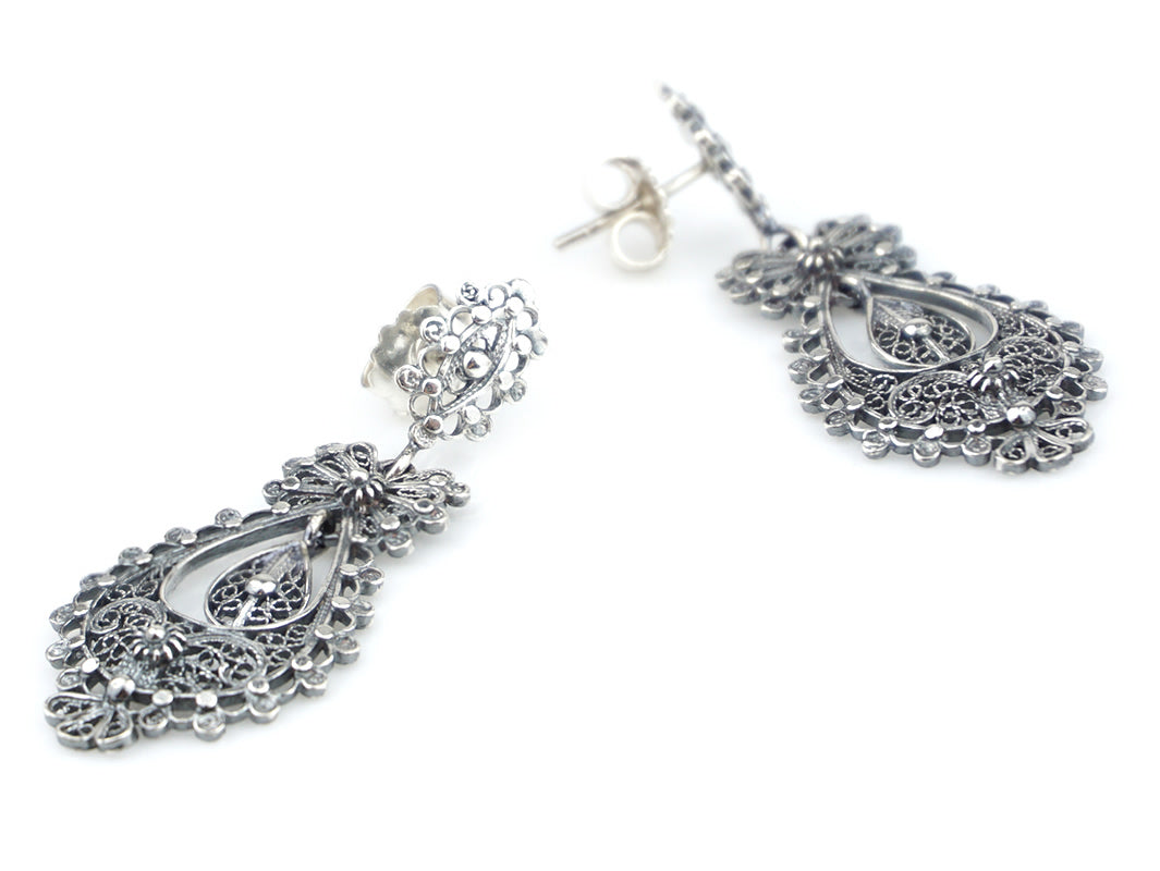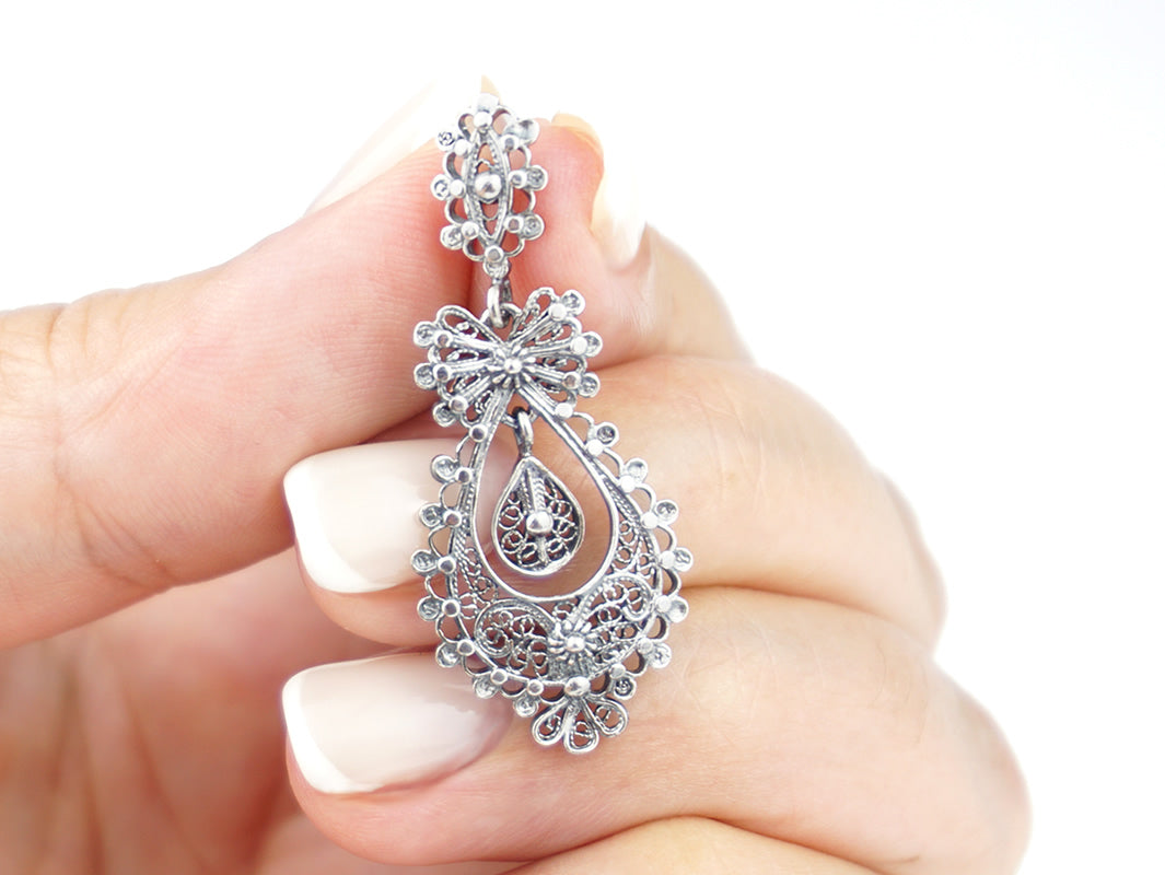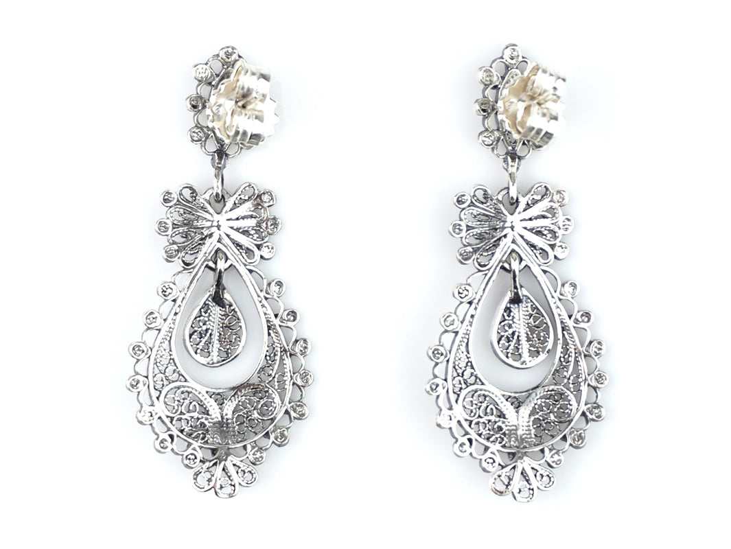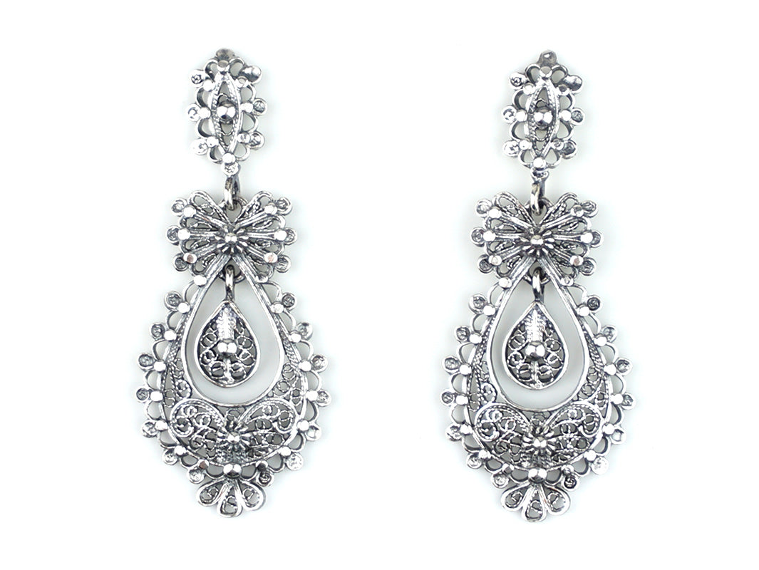 Brincos Princesa Médios, Filigrana Portuguesa, Prata de Lei 925