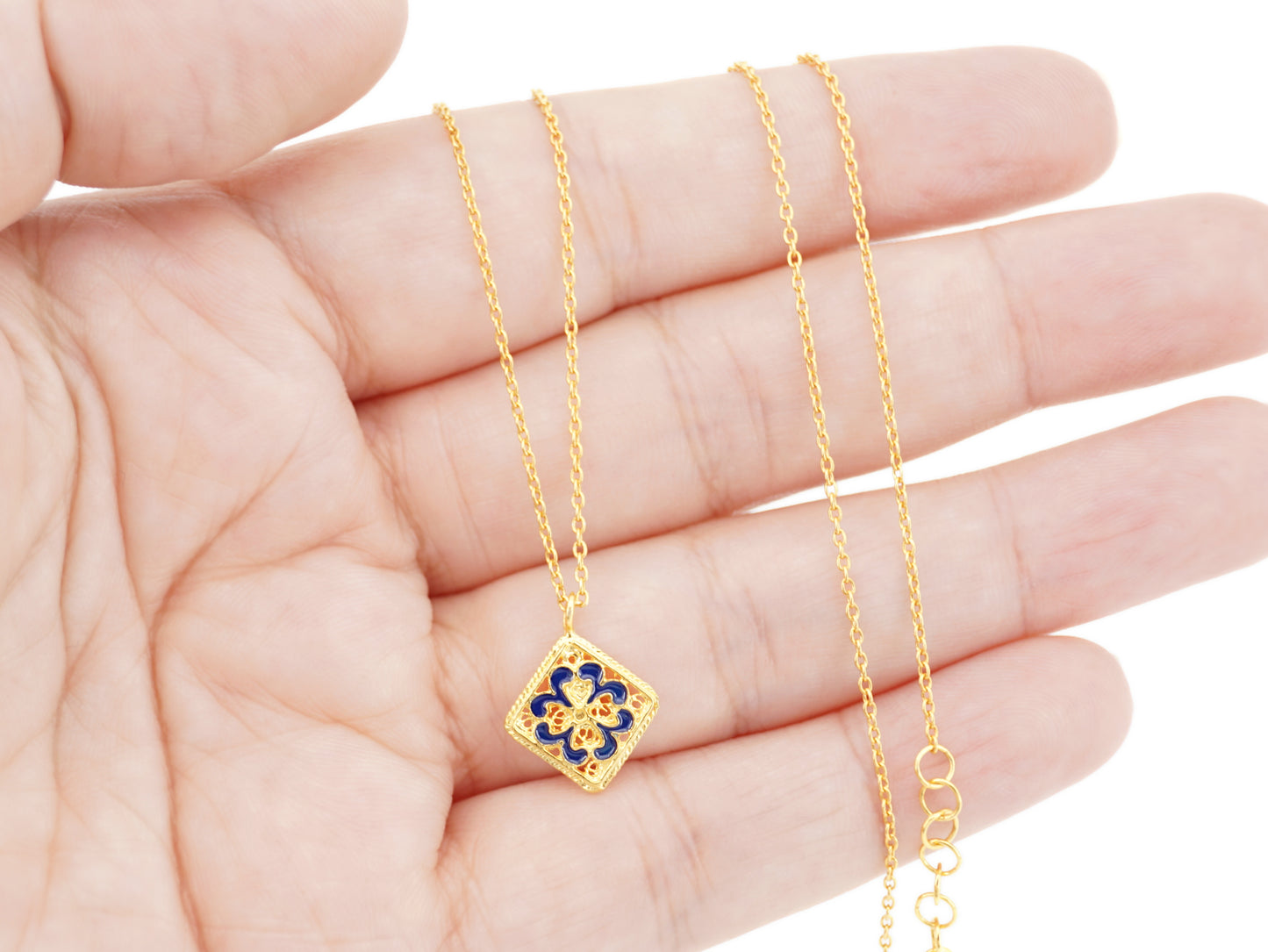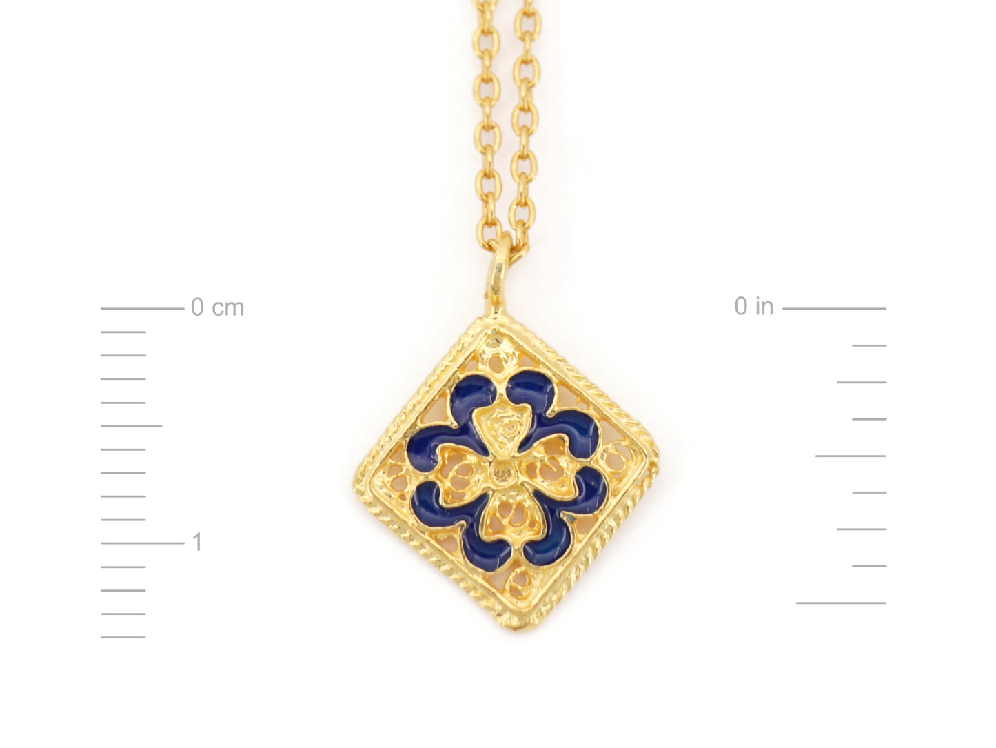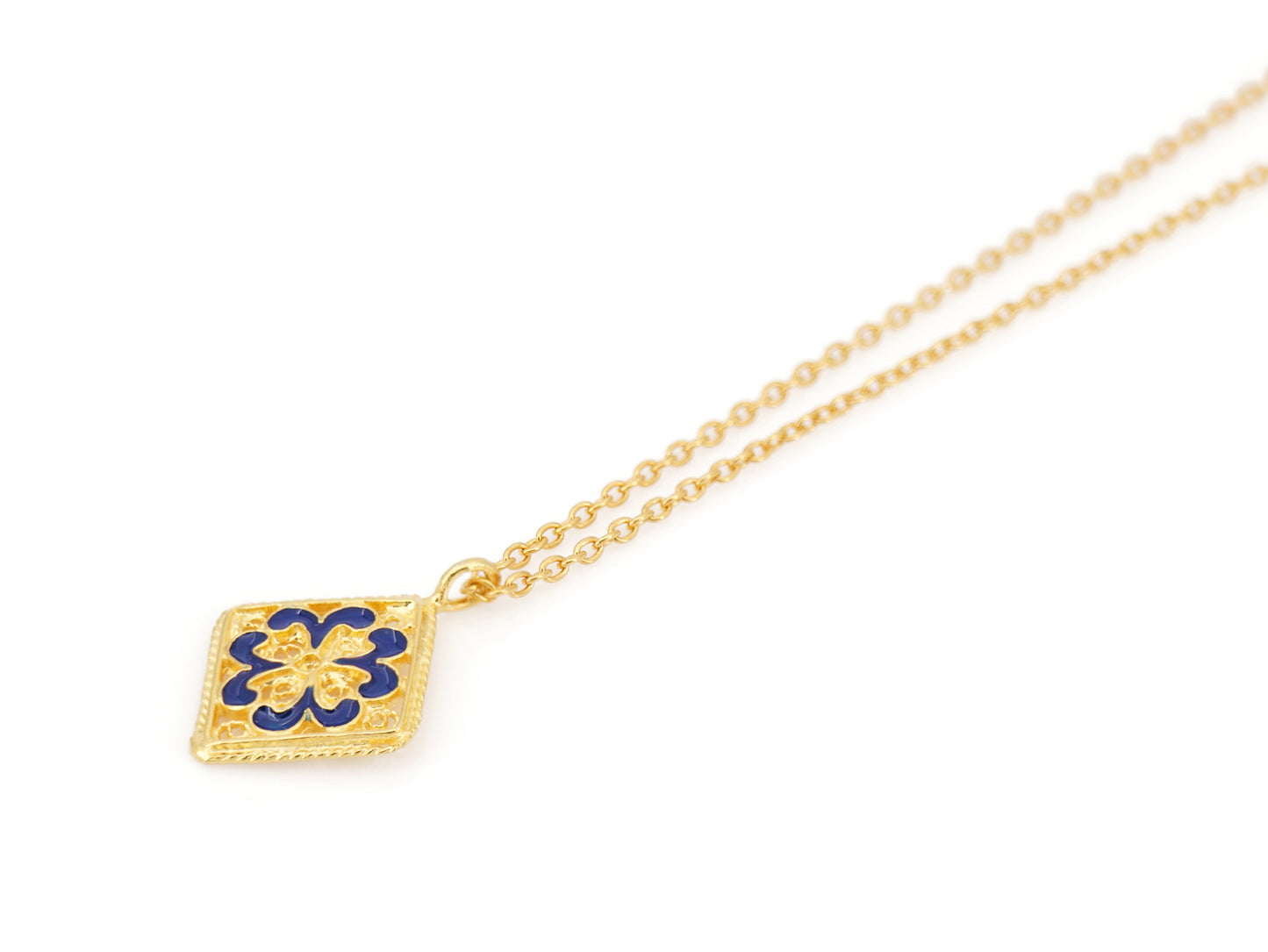 Colar Mini Azulejo, Filigrana Portuguesa, Prata de Lei 925 Dourada
