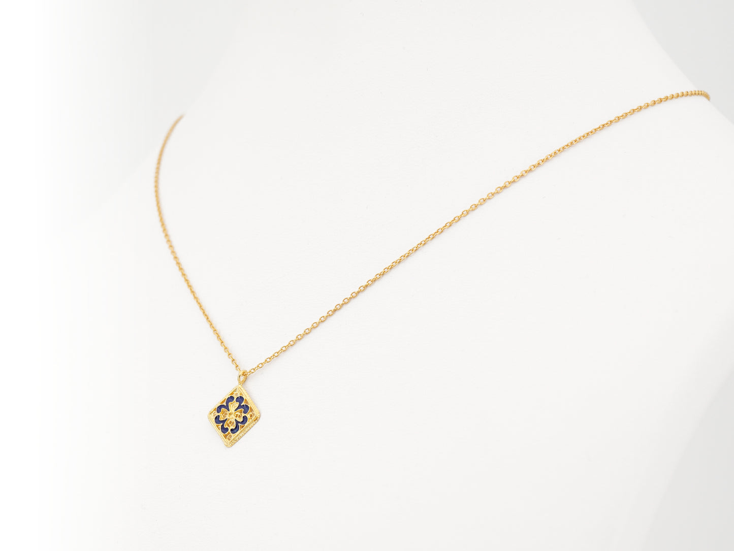 Elegante Colar curto ajustável com Mini Azulejo esmaltado a azul, da nossa colecção "Icones Portugueses". Filigrana Portuguesa, feito em Portugal em Prata de Lei 925, com Banho de Ouro.