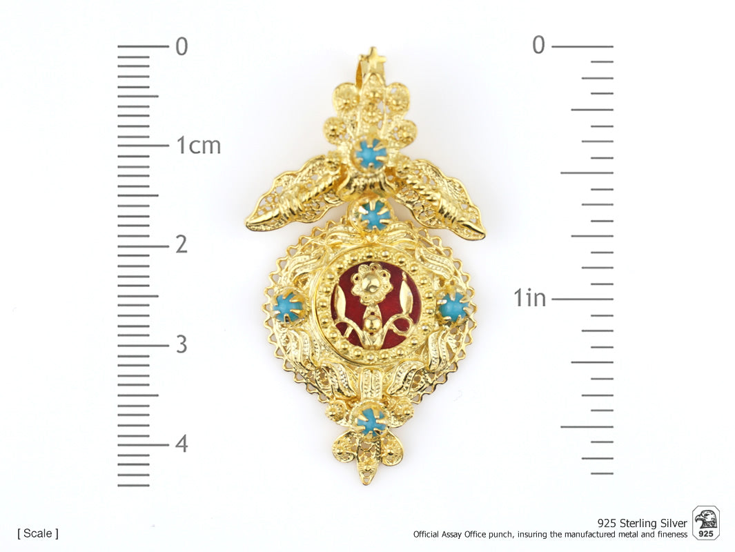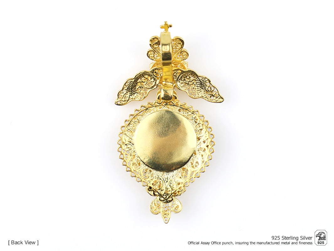 Esta jóia é 100% feita em Portugal, no município de Gondomar, e presta homenagem à cidade de Viana do Castelo - marco incontornável na divulgação e preservação da arte da Filigrana Portuguesa, através dos seus históricos costumes e festas.
