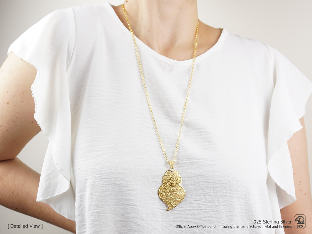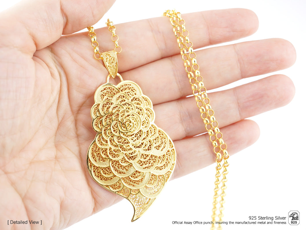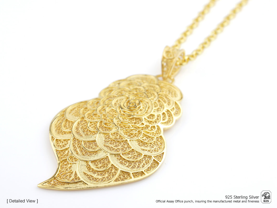 Colar Coração Pétalas Grande, Filigrana Portuguesa, Prata Dourada 925