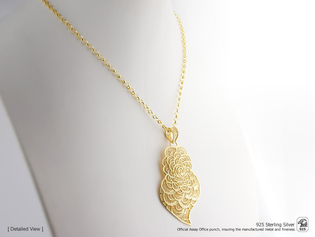Elegante Colar com Medalha Coração Pétalas grande. Filigrana Portuguesa, feito em Portugal em Prata de Lei 925 com Banho de Ouro.