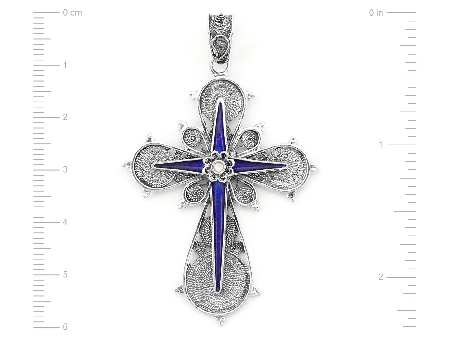 Colar Cruz com Esmalte, Filigrana Portuguesa, Prata de Lei 925
