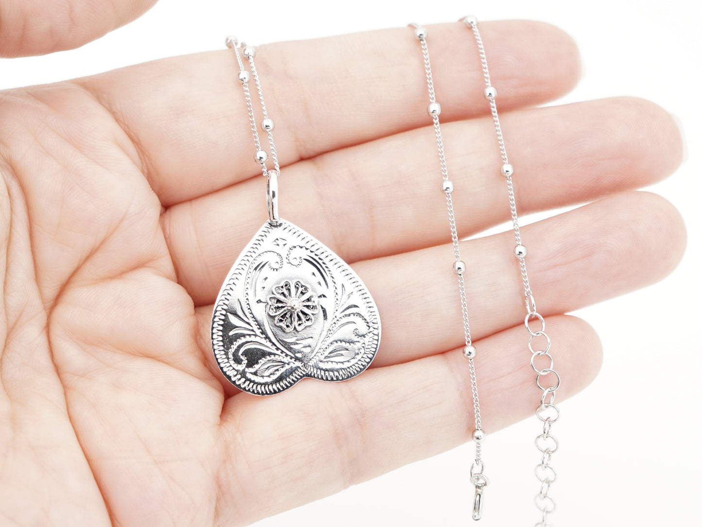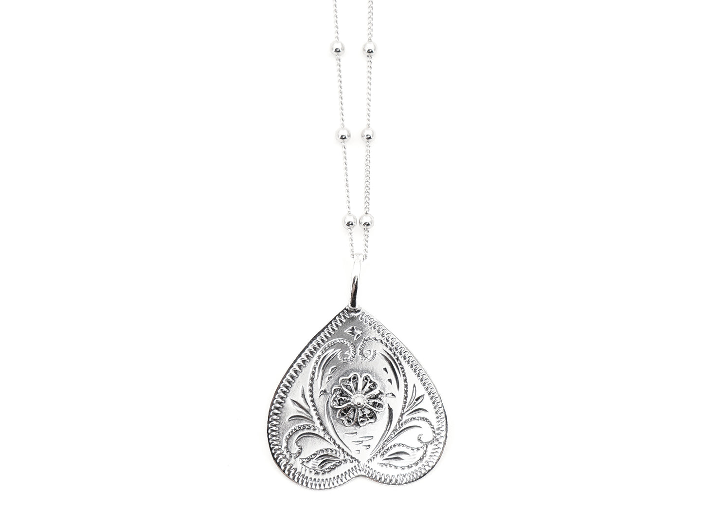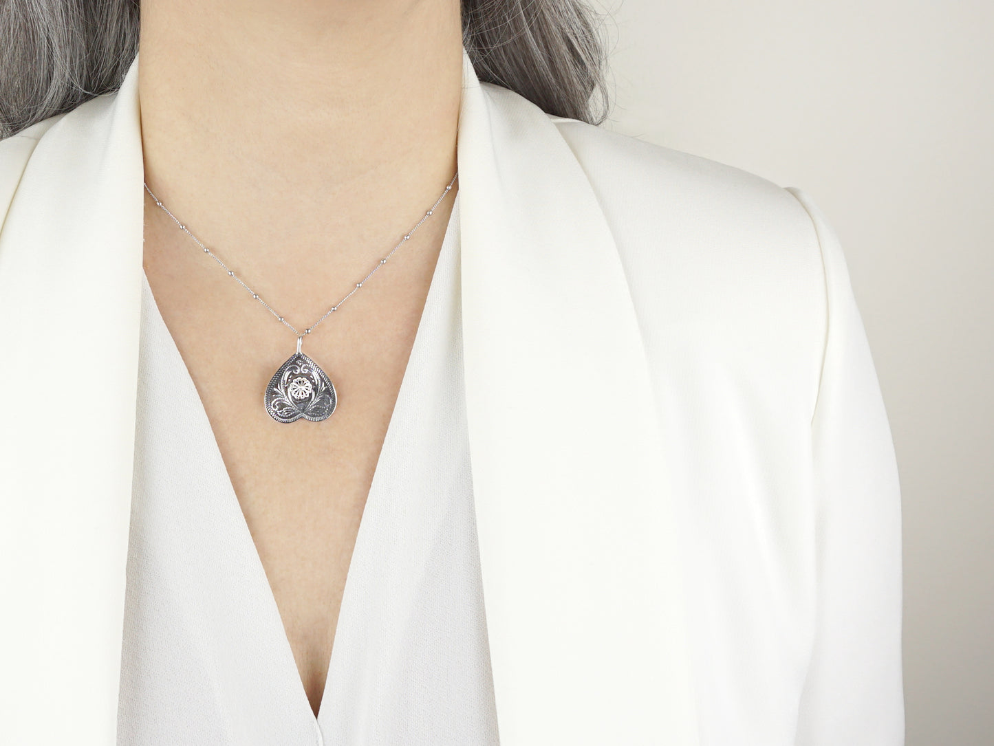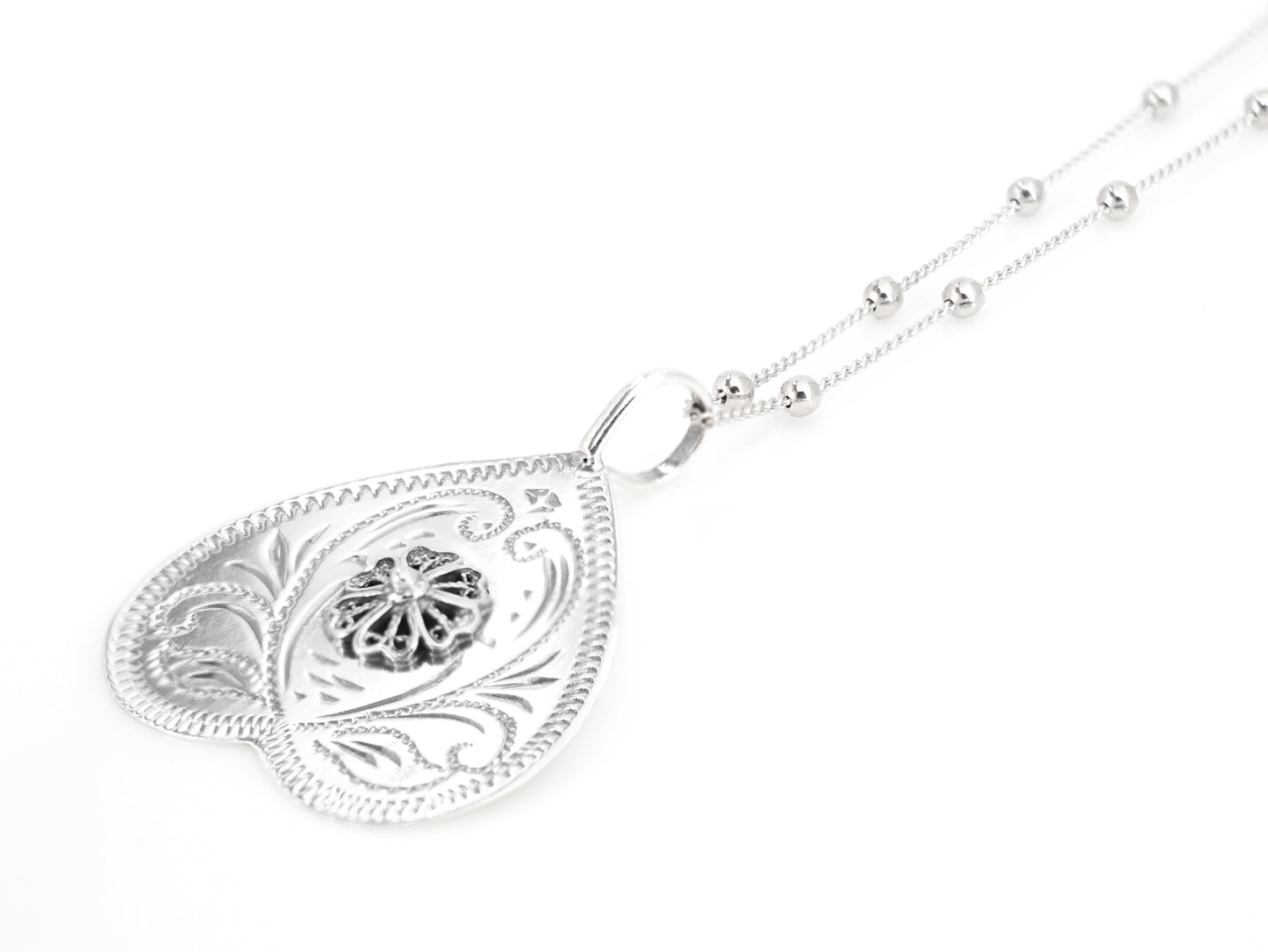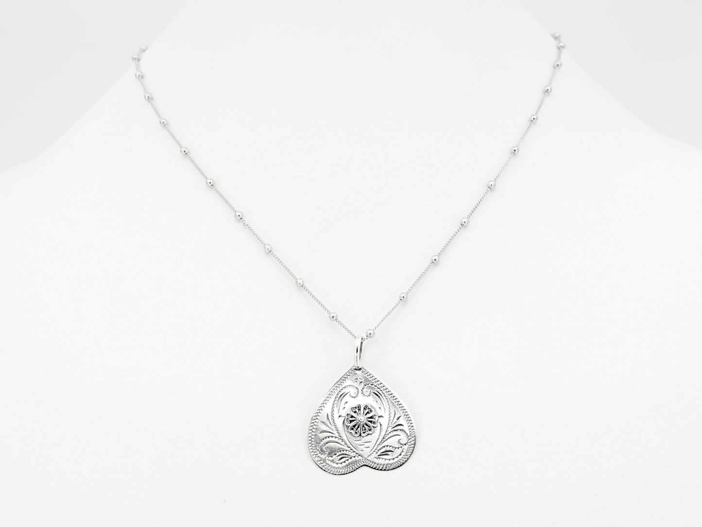 Elegante Colar Esferas ajustável com Medalha Coração Invertido de tamanho médio.