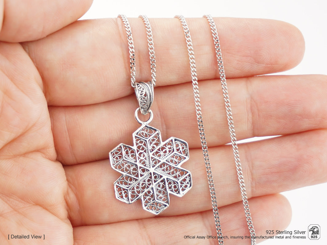 Elegante Colar com Medalha Geométrica. Filigrana Portuguesa, feito em Portugal em Prata de Lei 925.