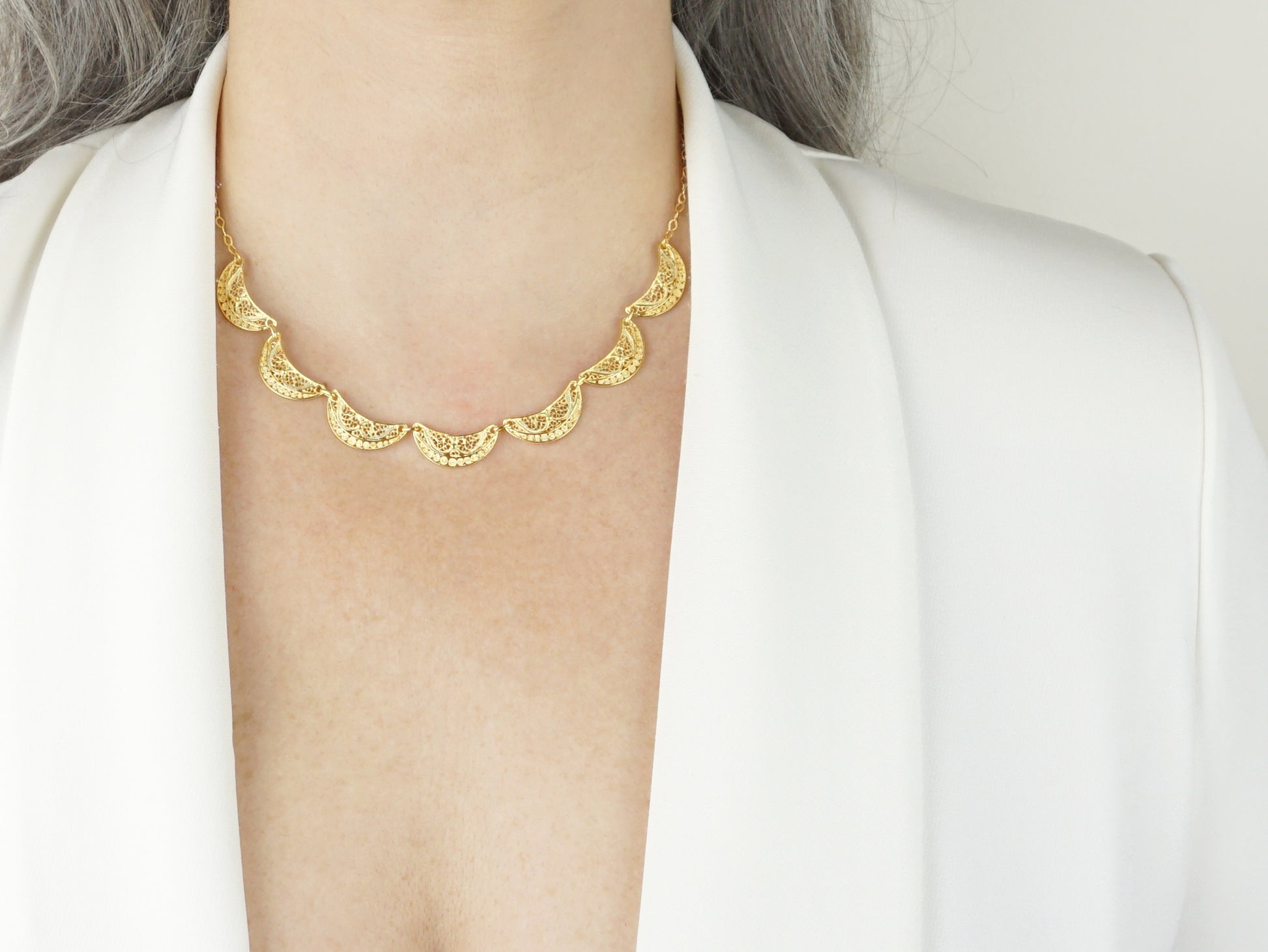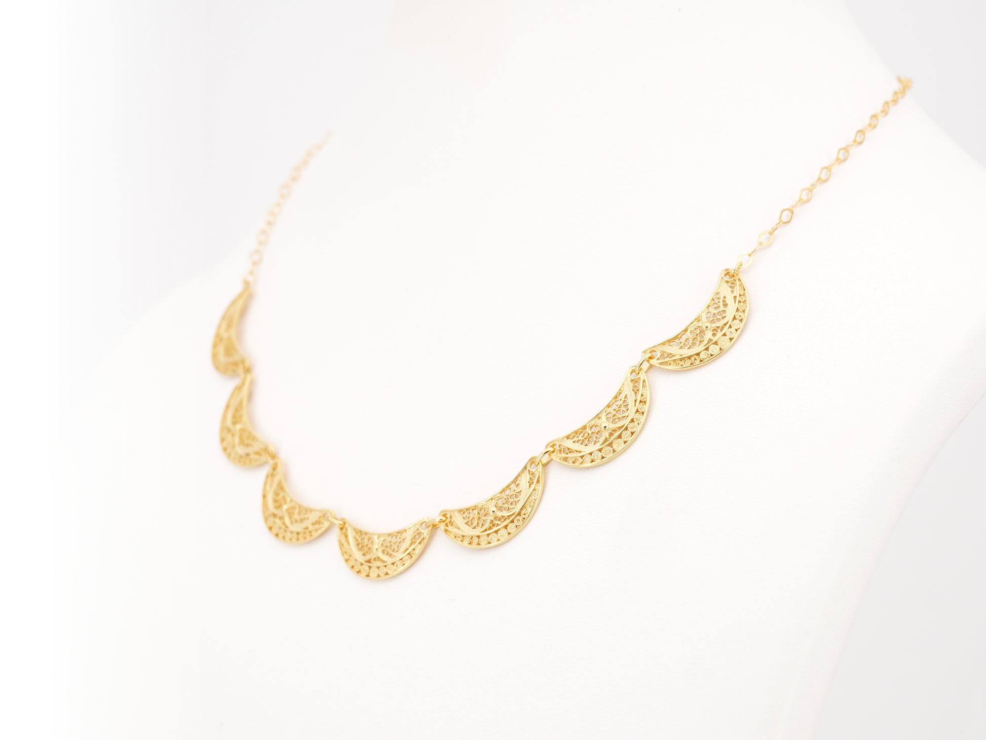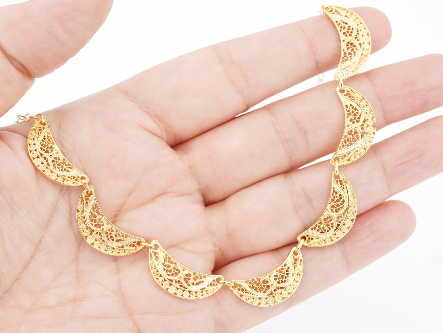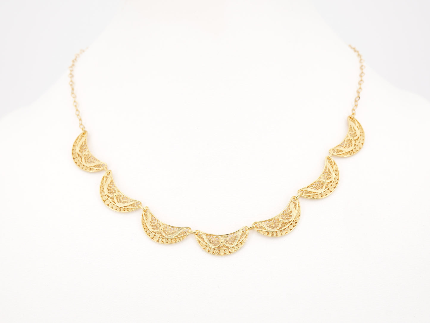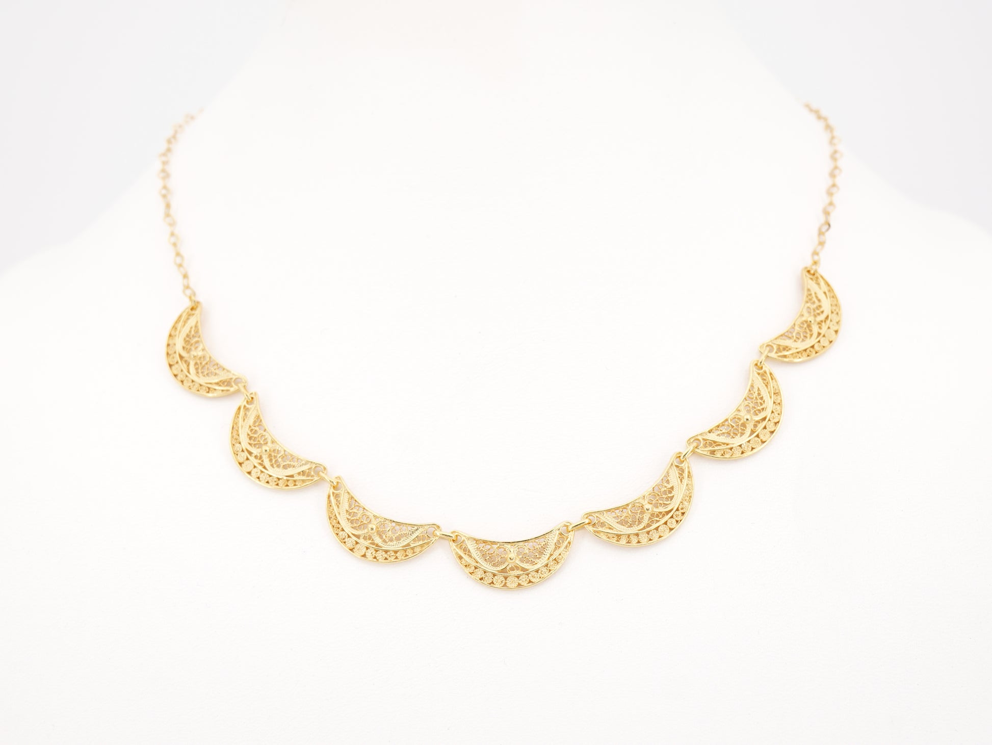 Colar Sete Gomos, Filigrana Portuguesa, Prata de Lei 925 Dourada