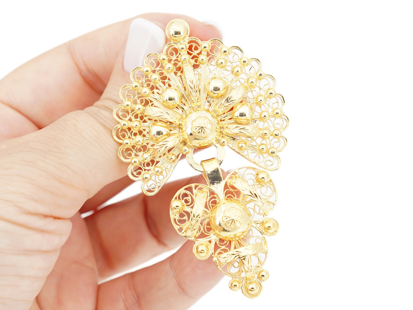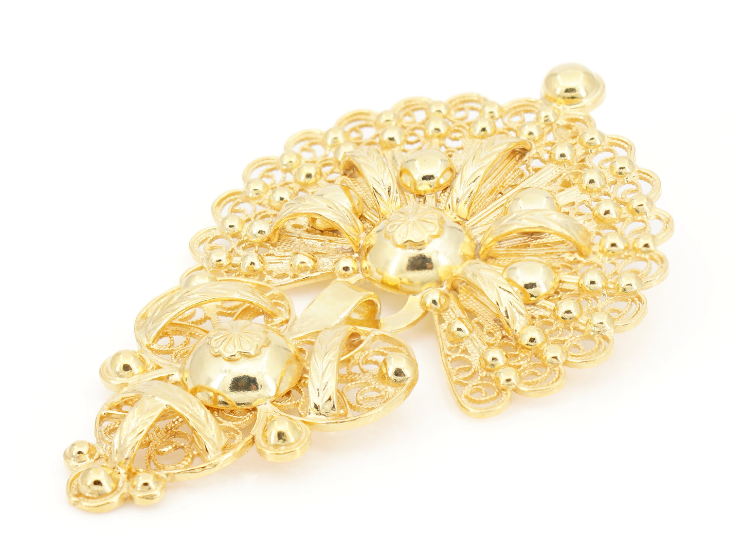 Medalha / Alfinete Laça Invertida Extra Grande, Filigrana Portuguesa, Prata de Lei 925 Dourada