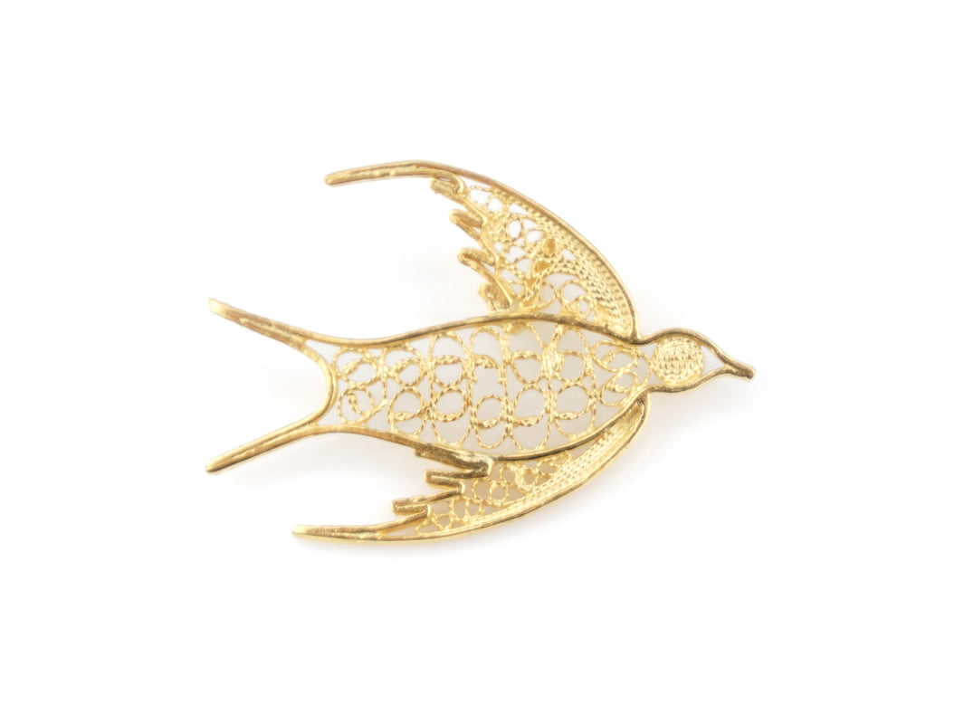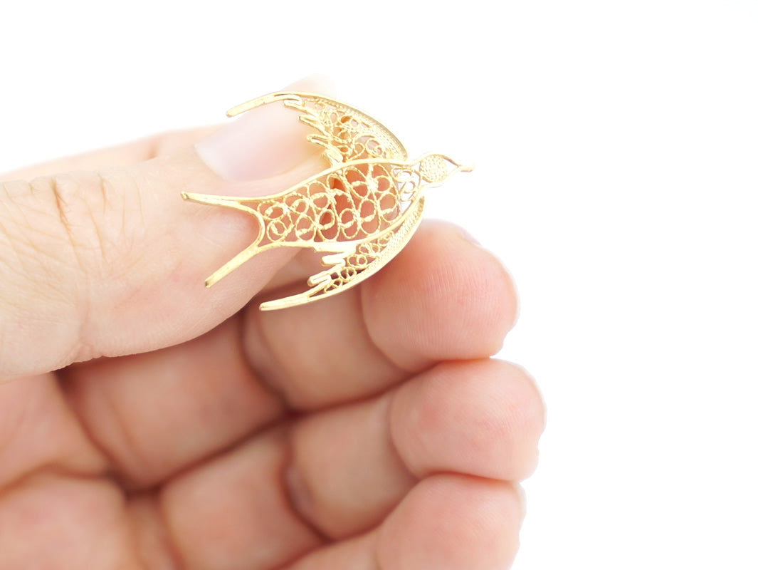 Elegante Medalha Andorinha. Filigrana Portuguesa, feito em Portugal em Prata de Lei 925, com Banho de Ouro.