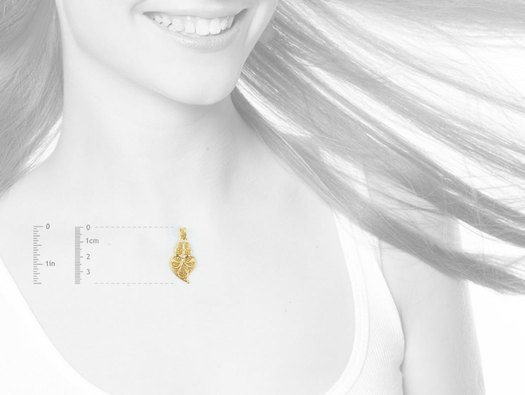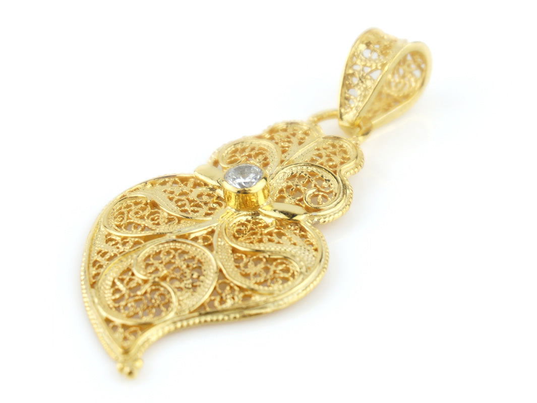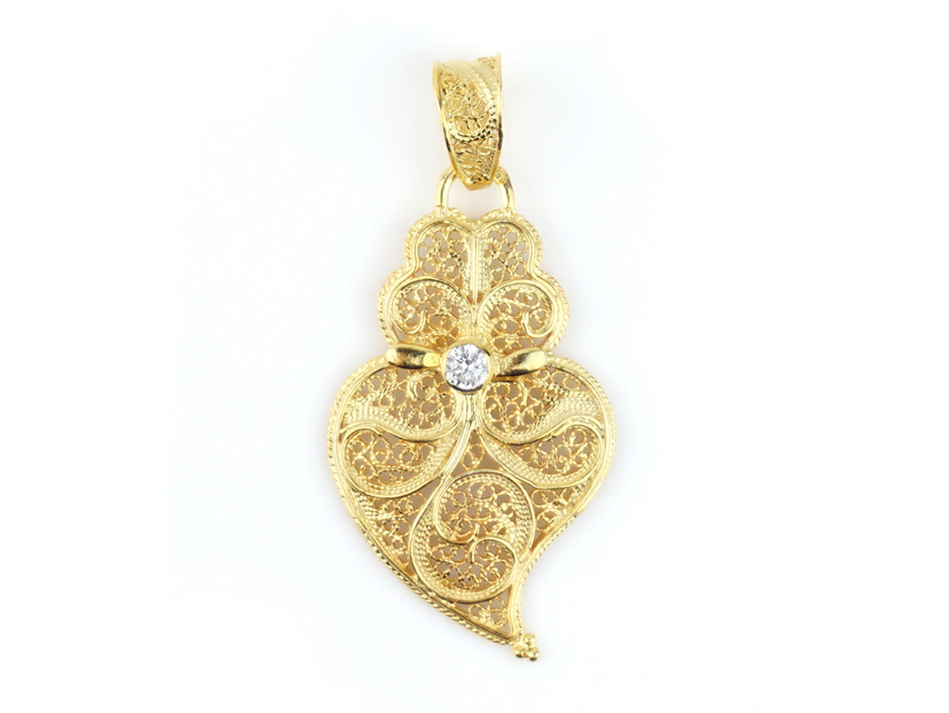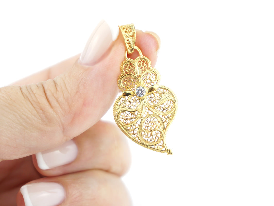 Elegante Medalha Coração de Viana Pequeno com Zircónia. Filigrana Portuguesa, feito em Portugal em Prata de Lei 925, com Banho de Ouro.