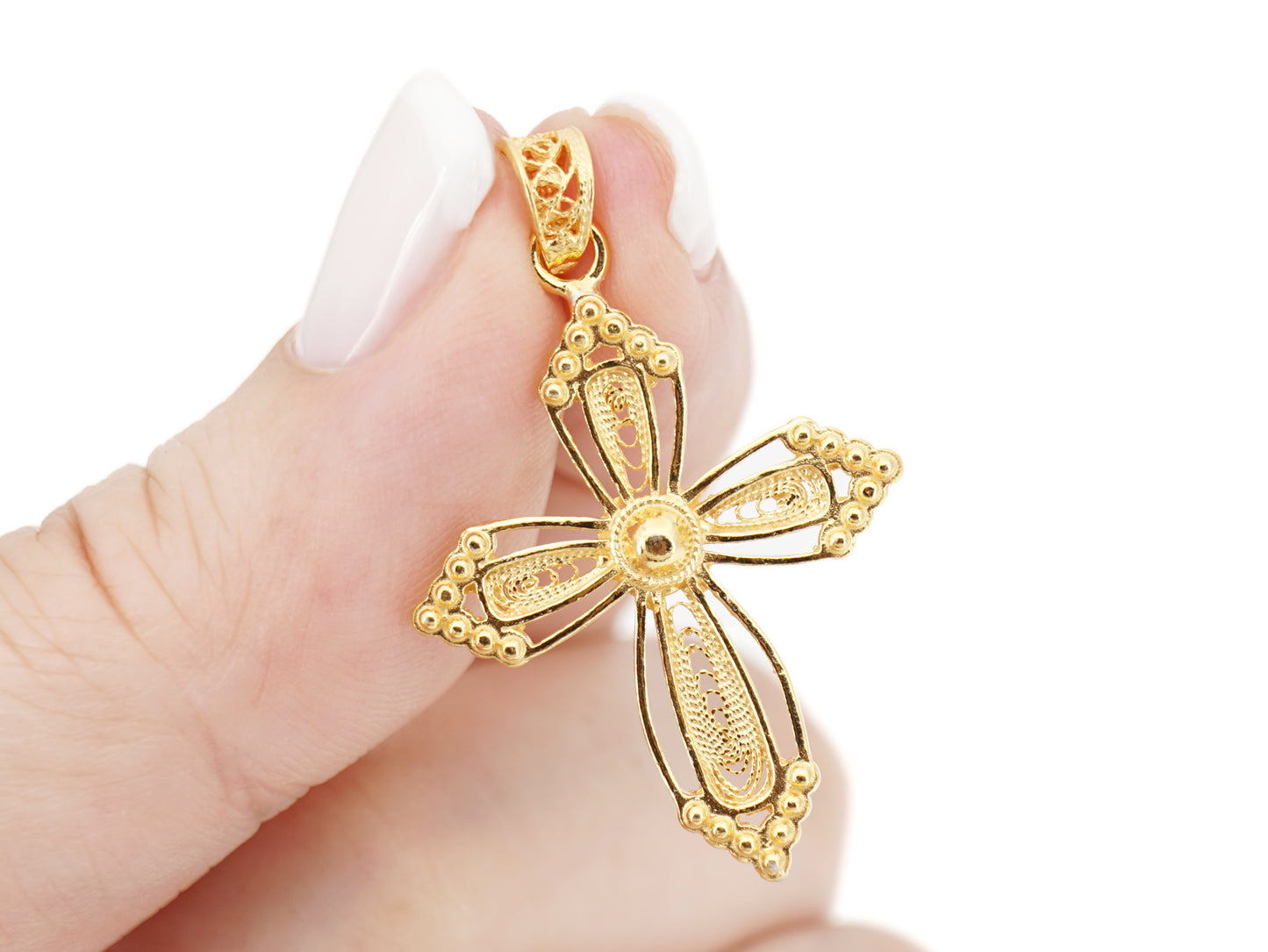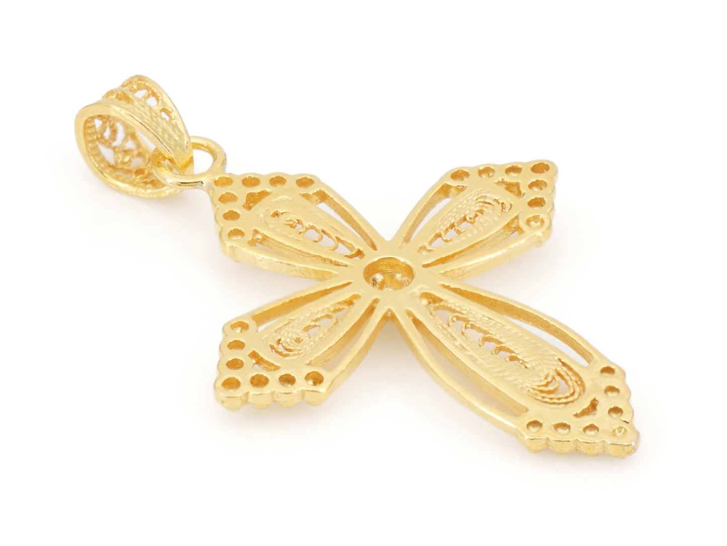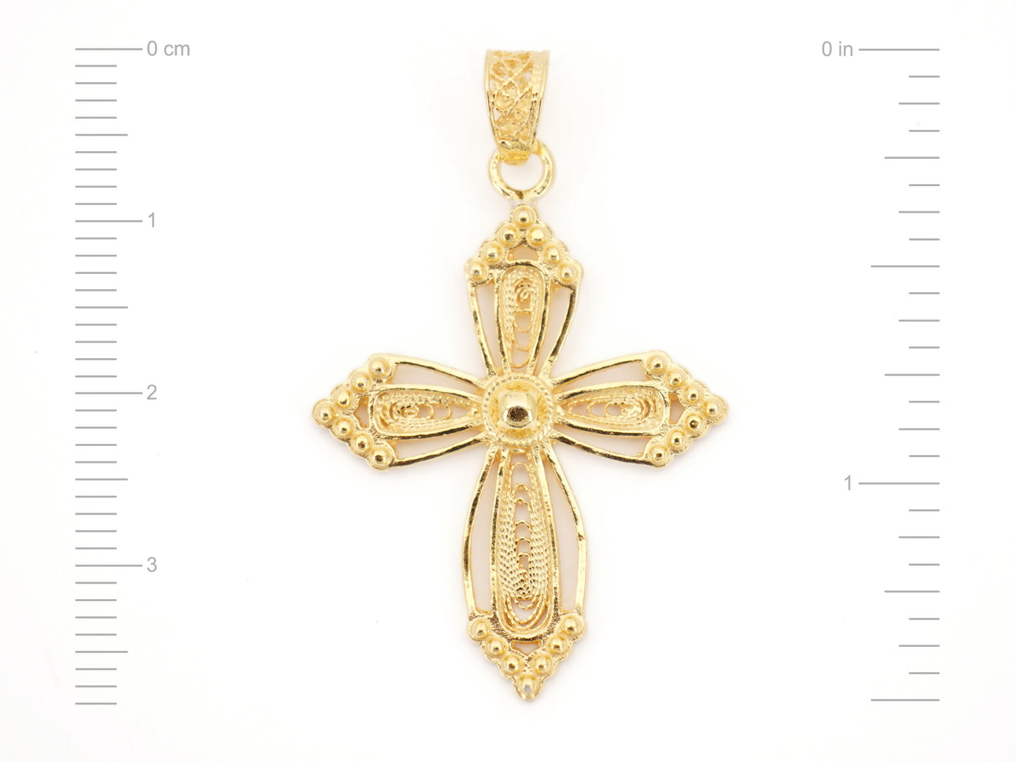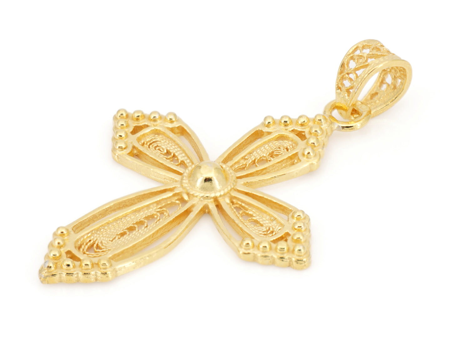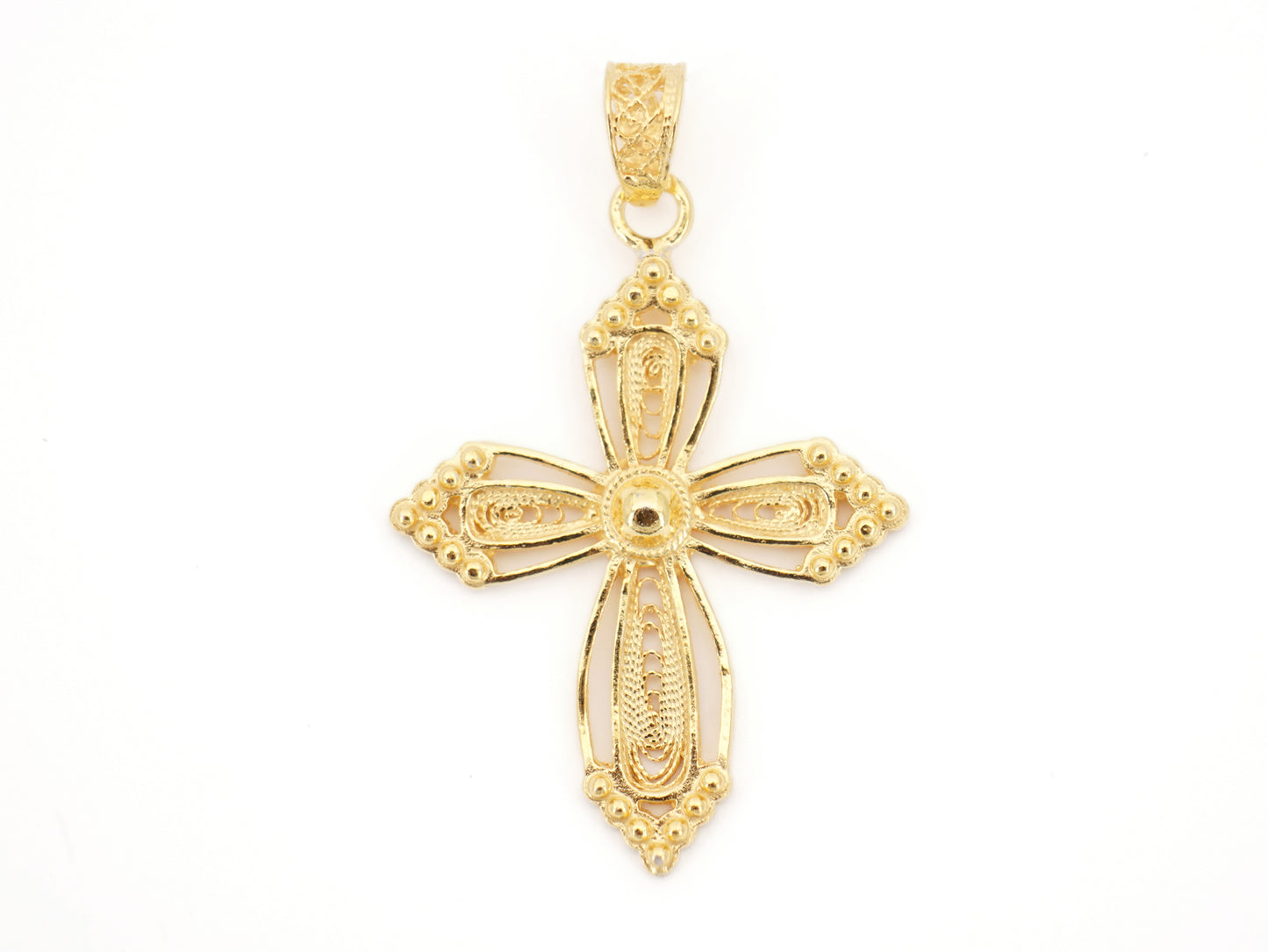 Elegante Medalha Cruz em Filigrana Portuguesa, feito em Portugal em Prata de Lei 925, com Banho de Ouro.