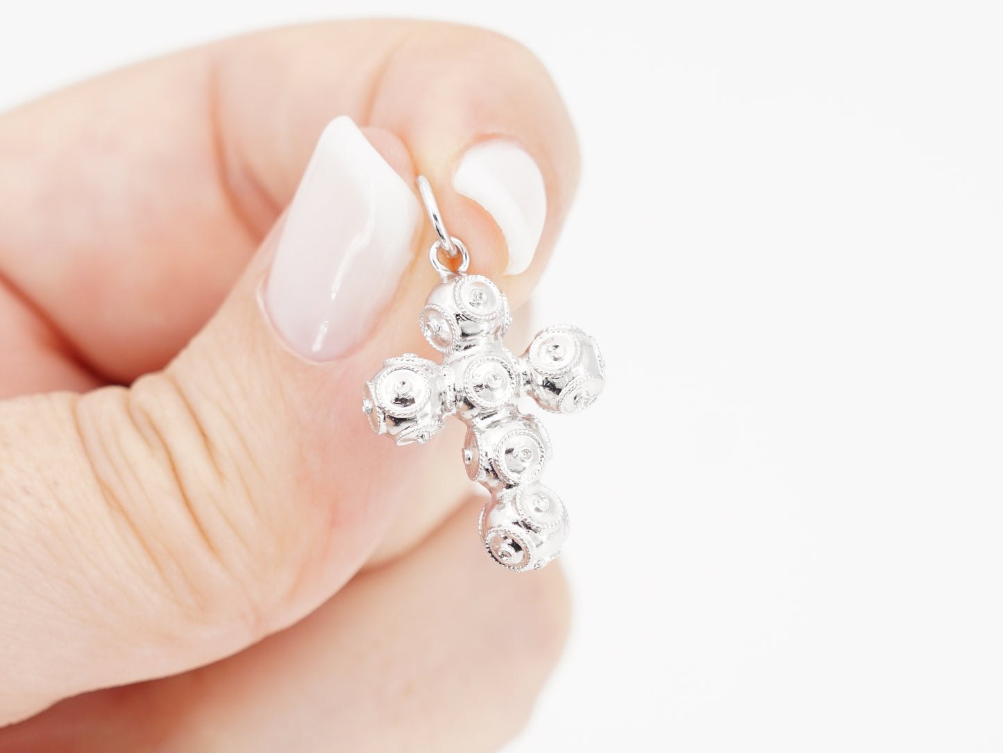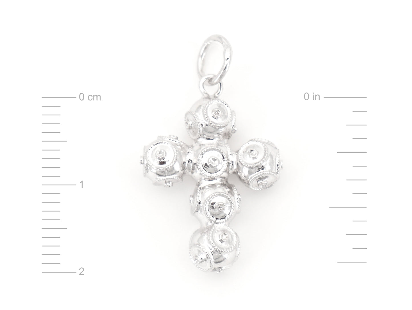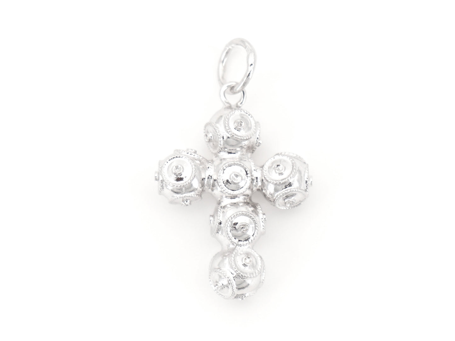 Elegante Medalha Cruz Pequena de Contas de Viana. Filigrana Portuguesa, feito em Portugal em Prata de Lei 925, com Banho de Ródio.