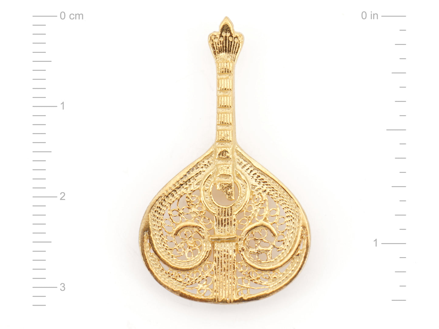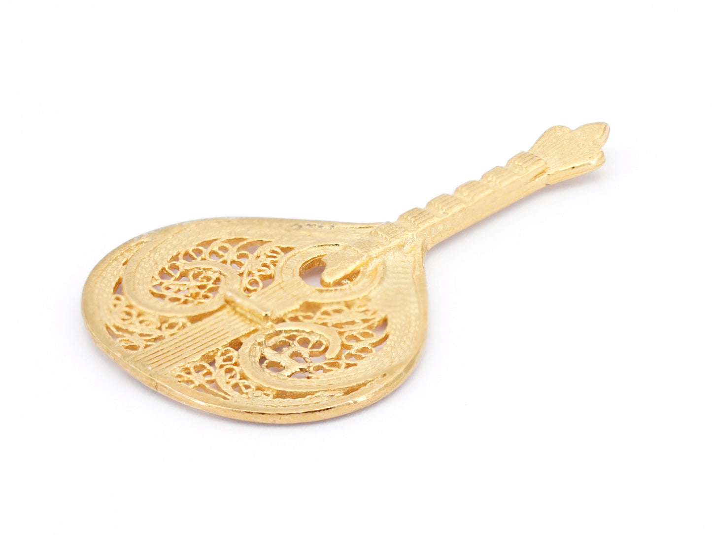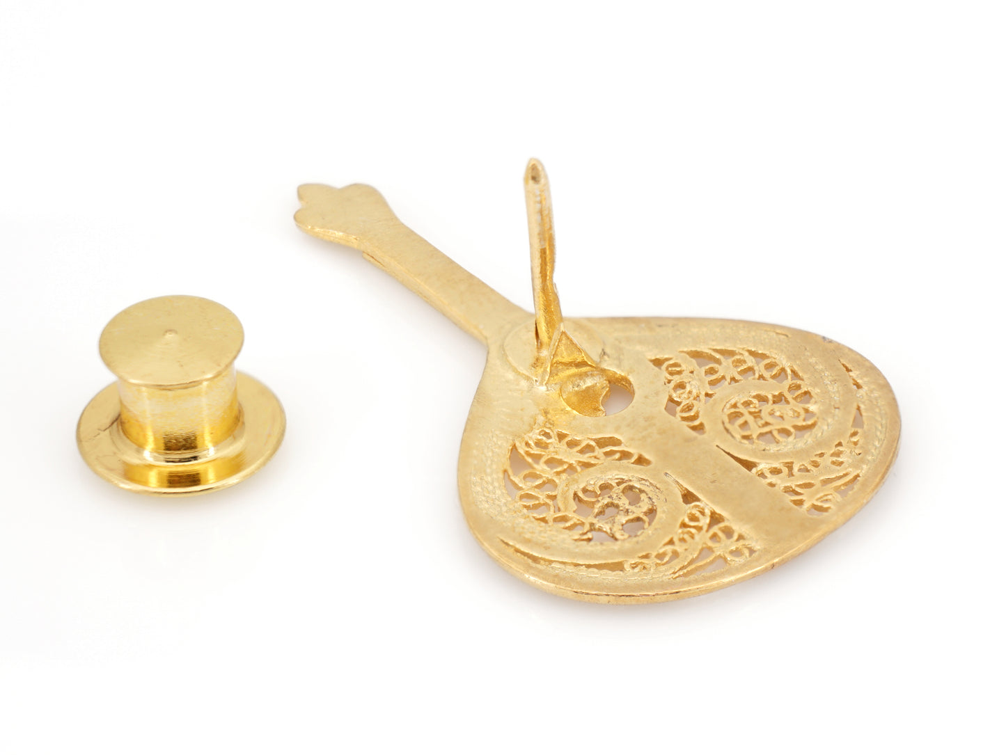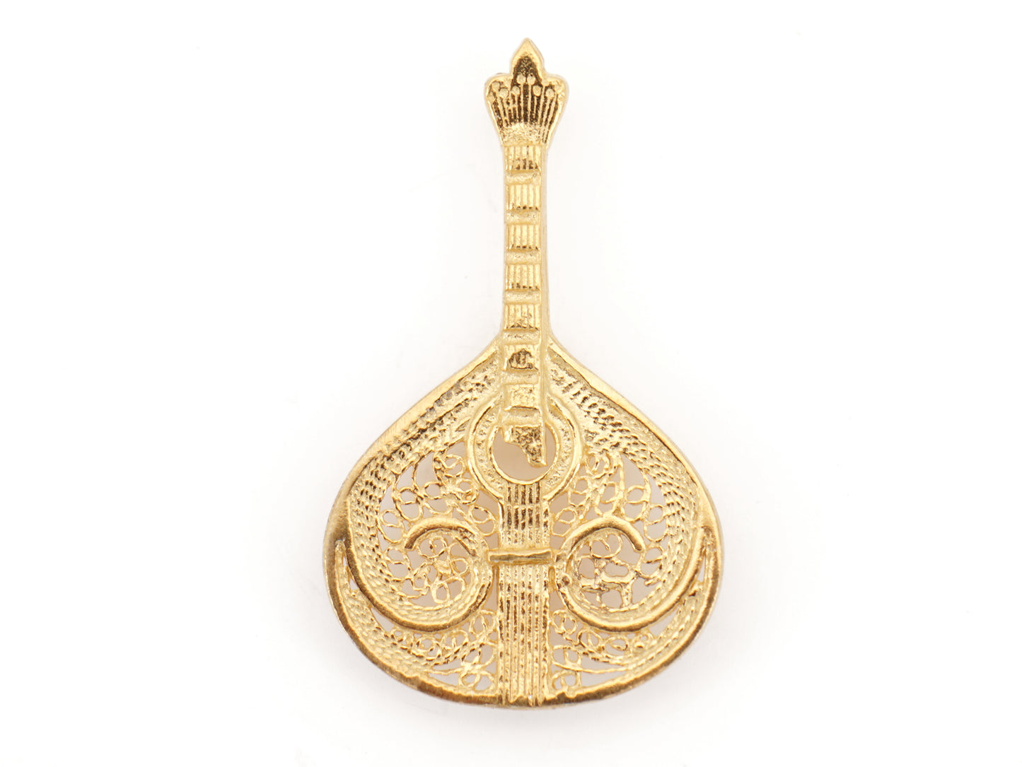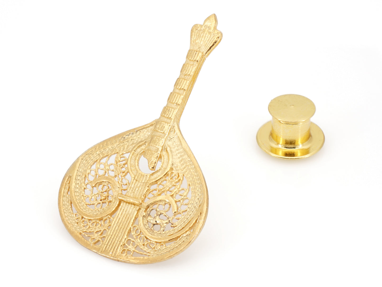 Elegante Pin Guitarra Portuguesa Amália, Filigrana Portuguesa, feito em Portugal em Prata de Lei 925 com Banho de Ouro.