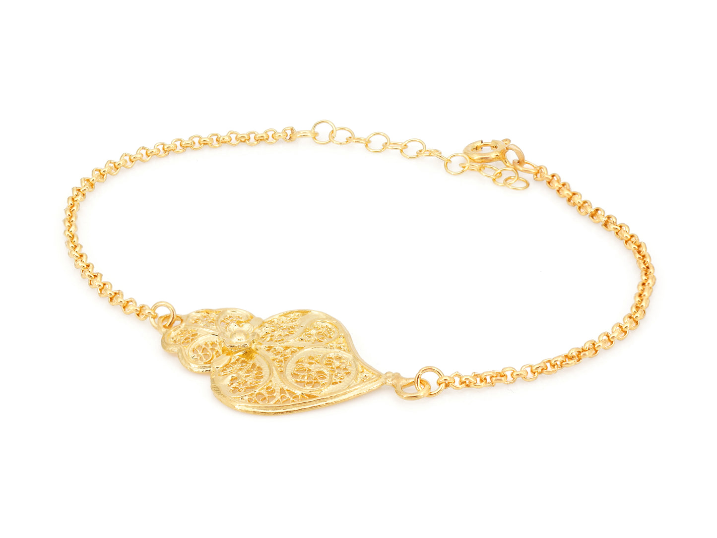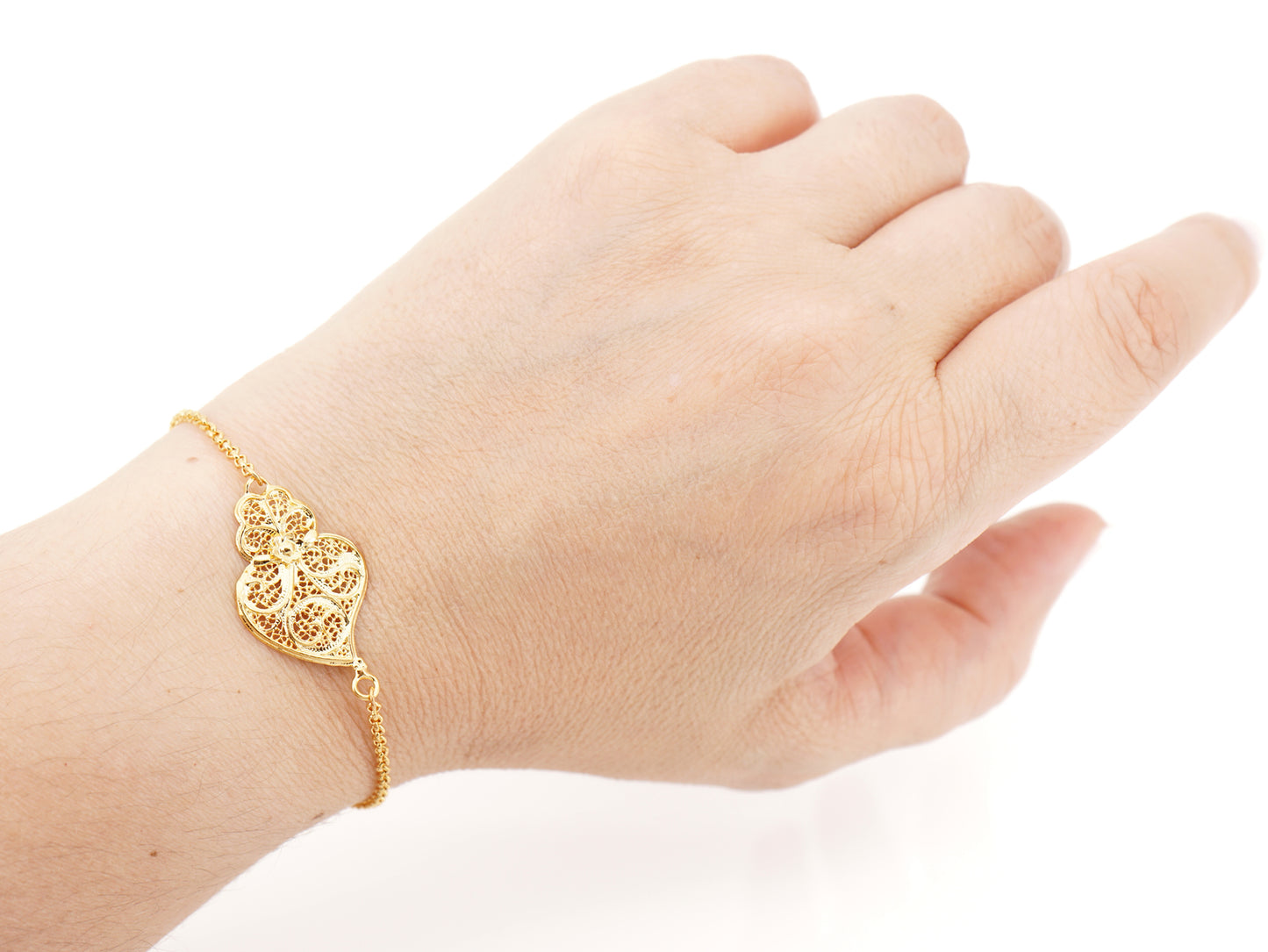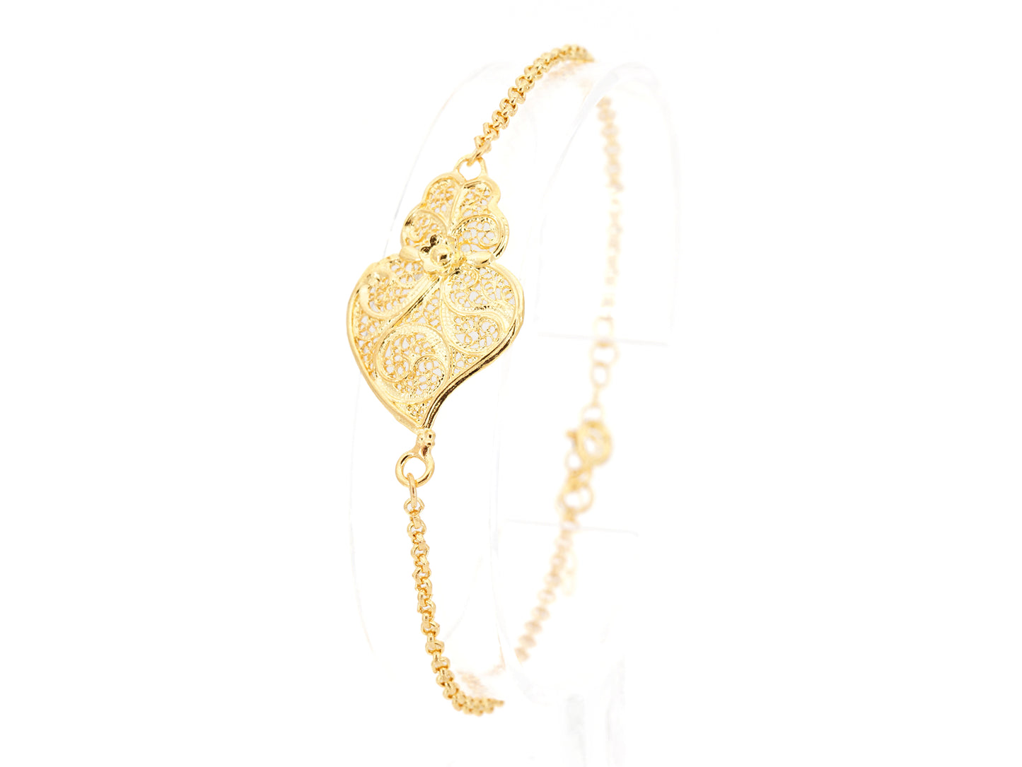 Elegante Pulseira com Coração de Viana. Filigrana Portuguesa, feito em Portugal em Prata de Lei 925, com Banho de Ouro.