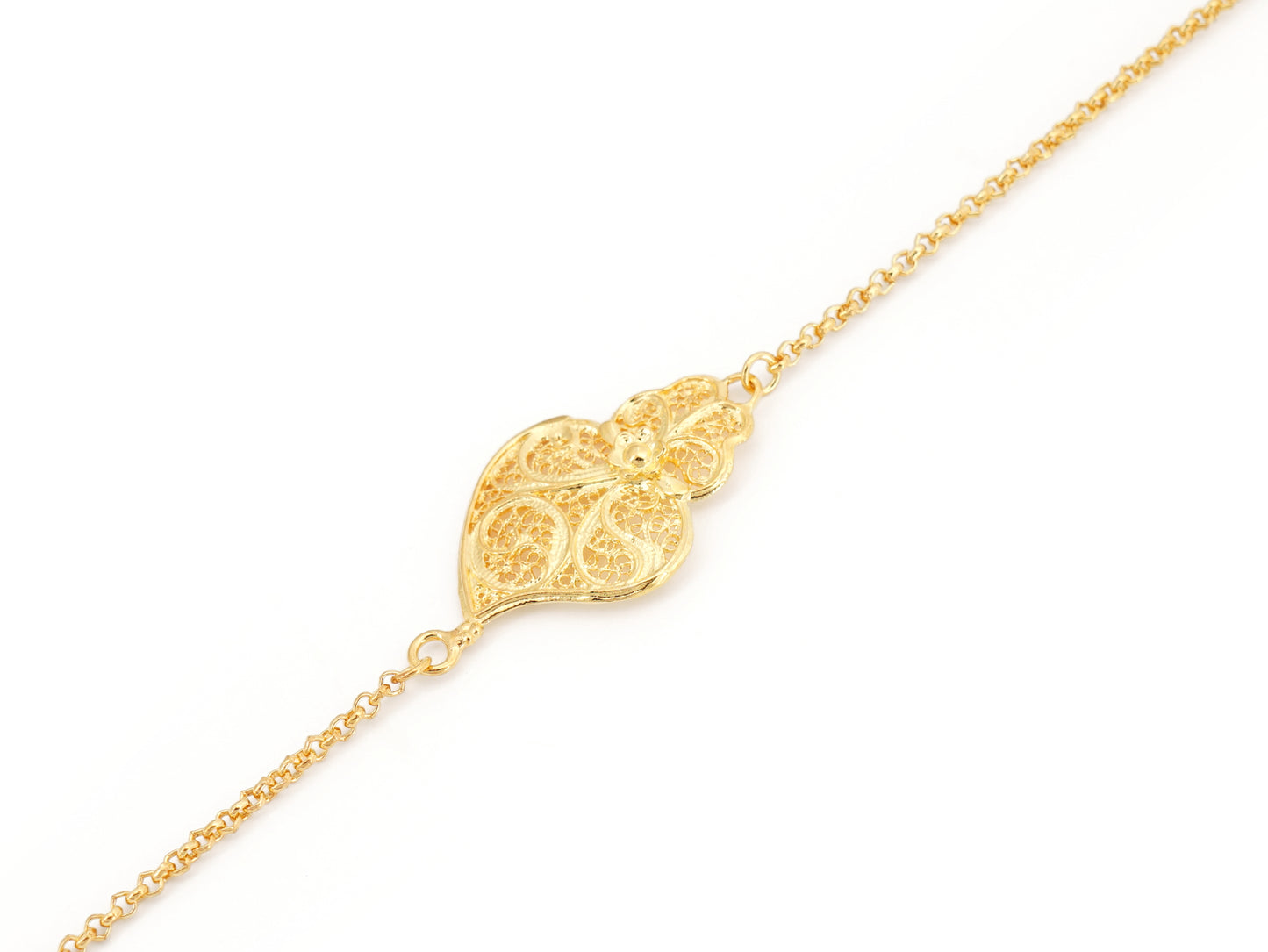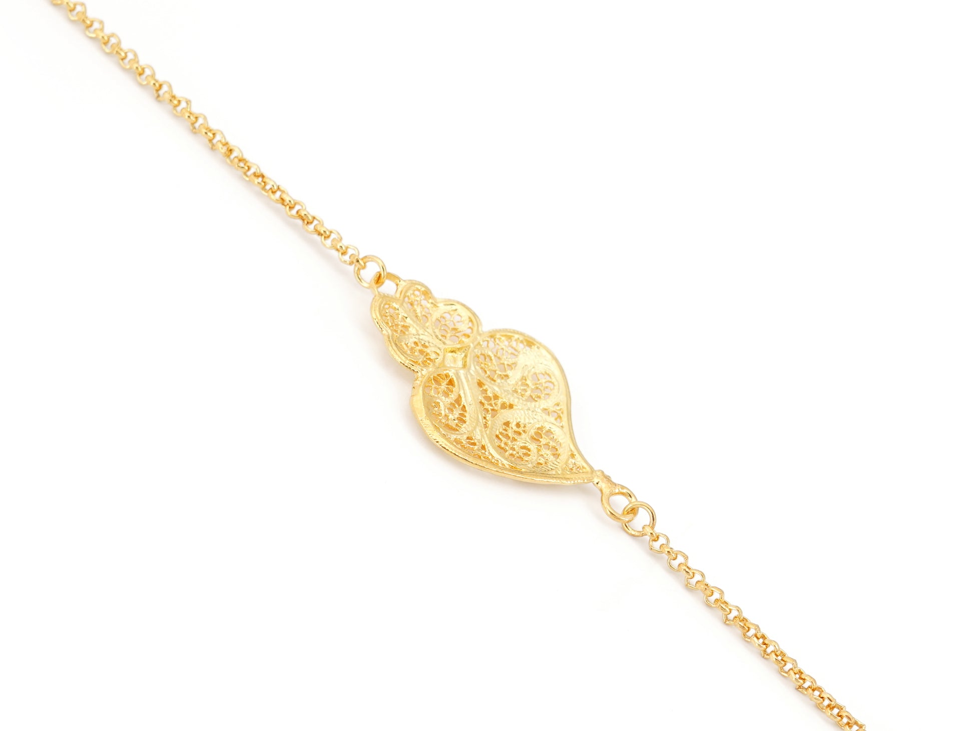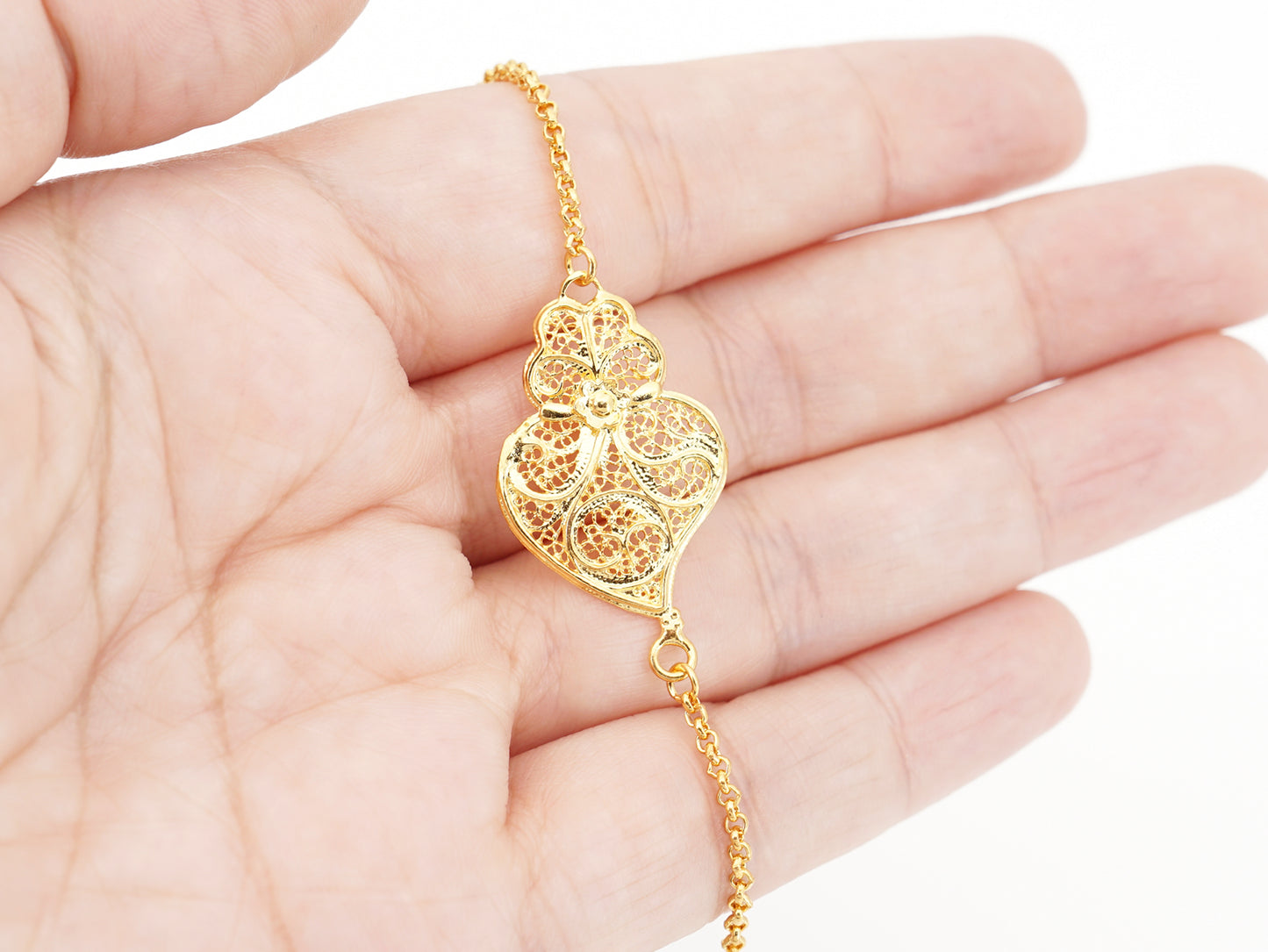 Elegante Pulseira com Coração de Viana. Filigrana Portuguesa, feito em Portugal em Prata de Lei 925, com Banho de Ouro.