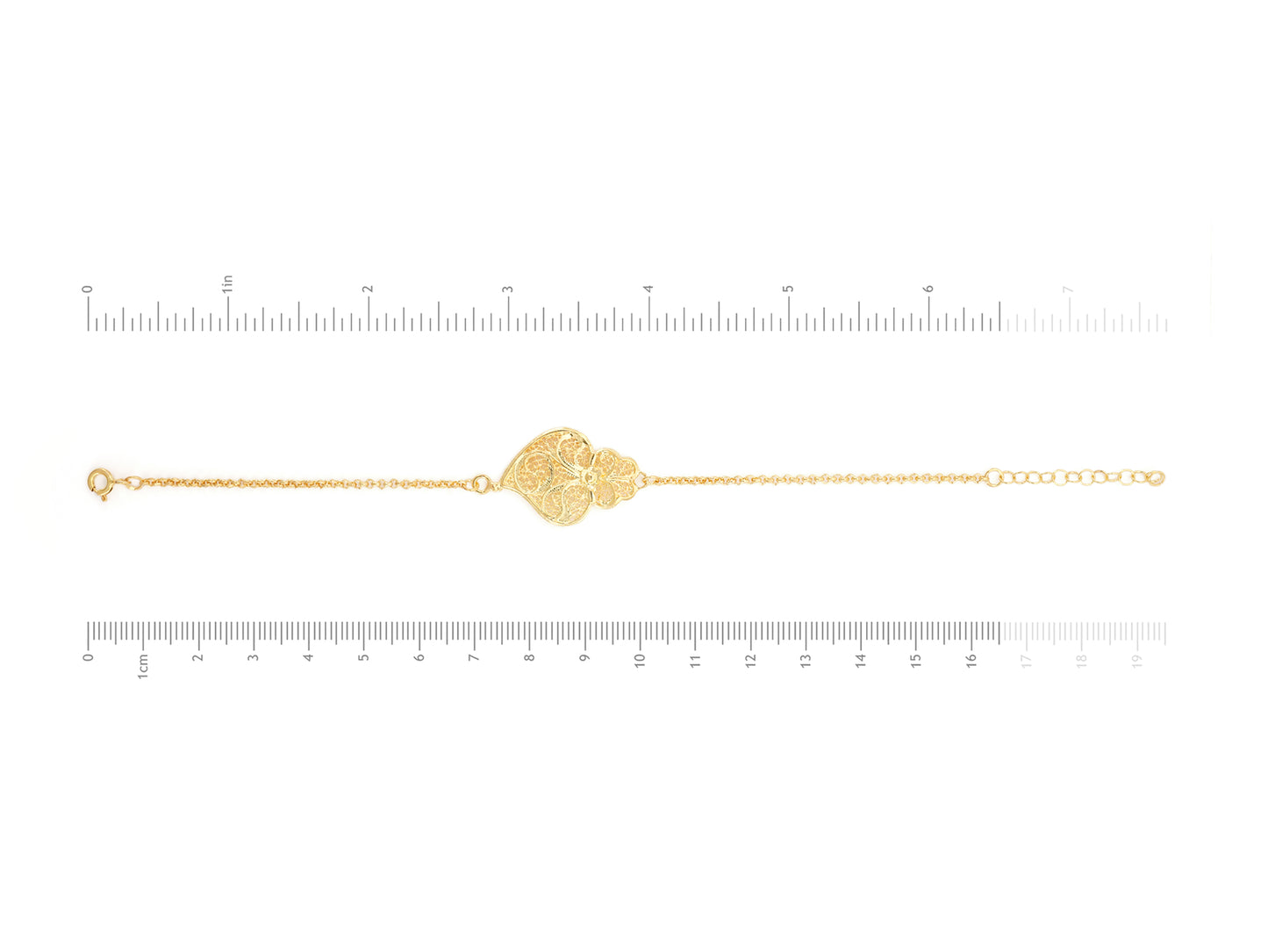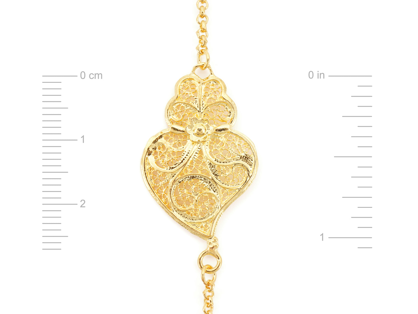 Pulseira com Coração de Viana, Filigrana Portuguesa, Prata de Lei 925 Dourada