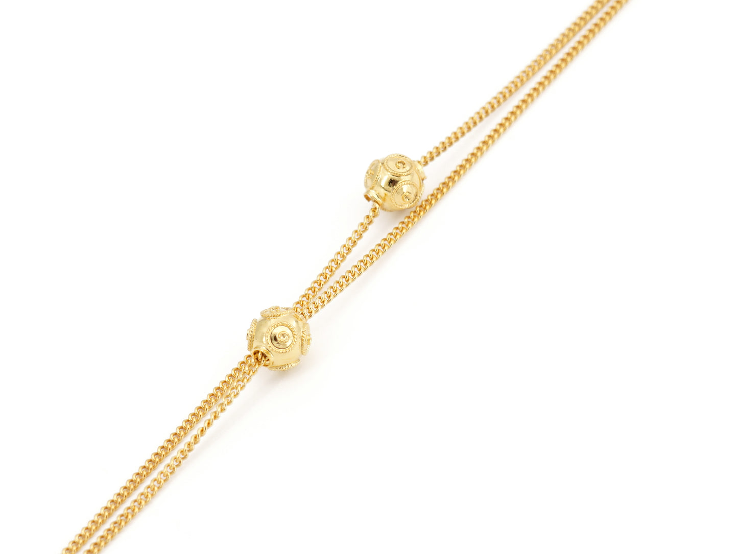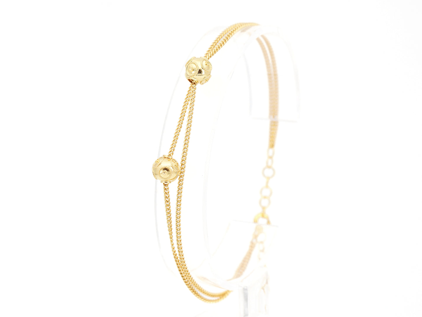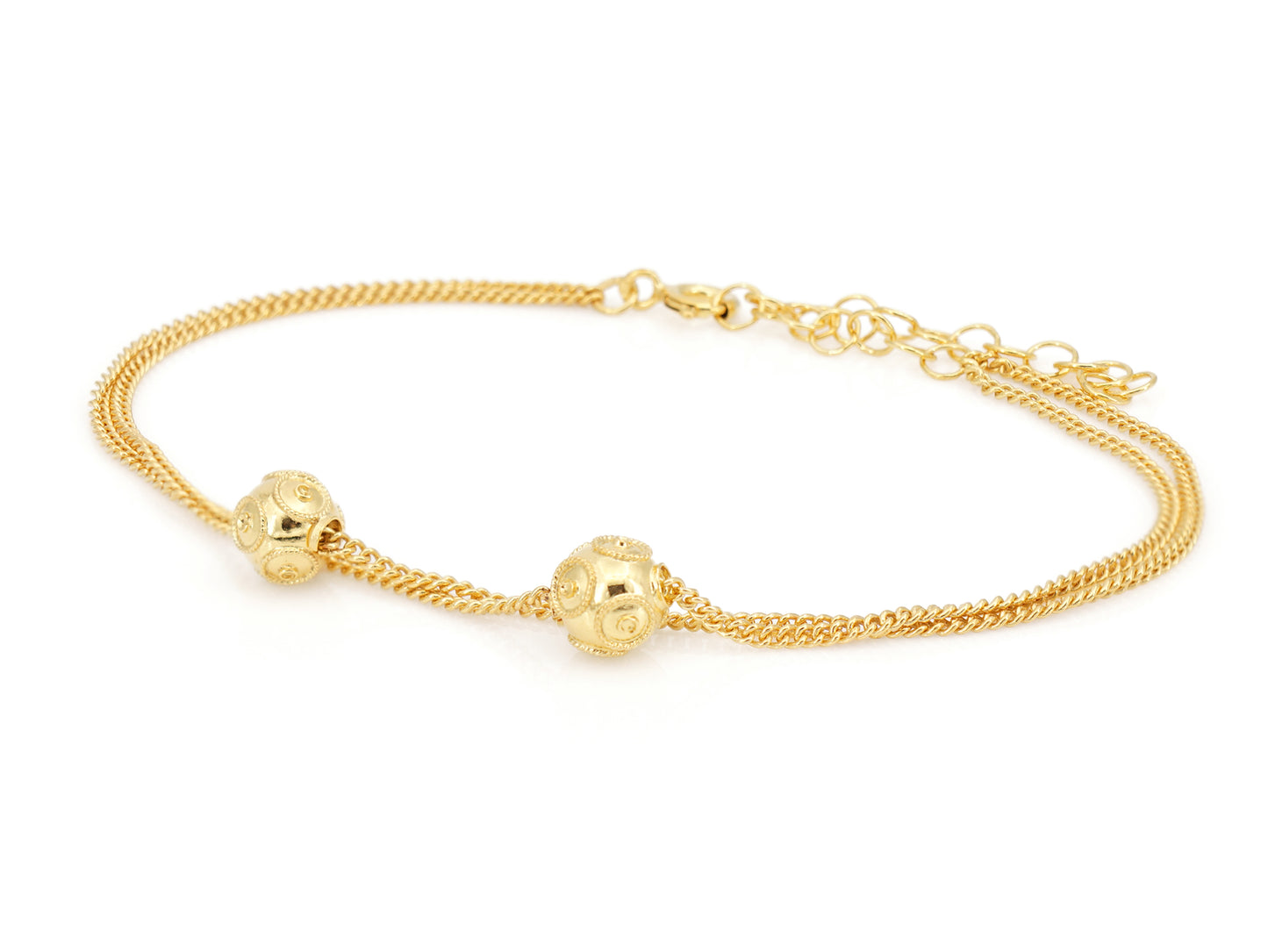 Pulseira com Duas Contas de Viana Pequenas, Filigrana Portuguesa, Prata Dourada 925