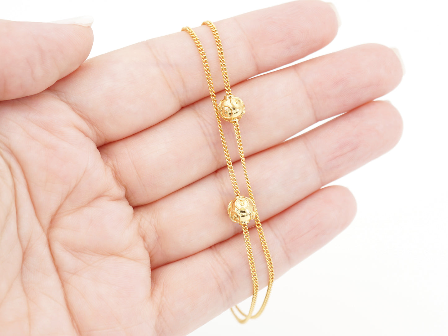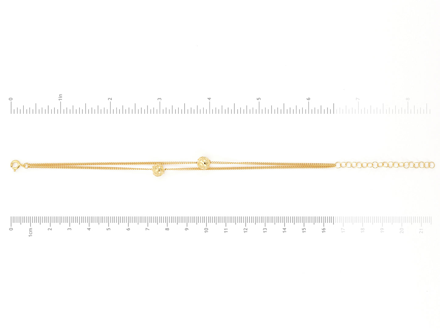 Elegante Pulseira com duas Contas de Viana pequenas. Filigrana Portuguesa, feito em Portugal em Prata de Lei 925, com Banho de Ouro.
