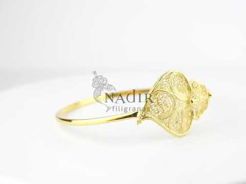 Pulseira Escrava Coração de Viana, Filigrana Portuguesa, Prata de Lei 925 Dourada